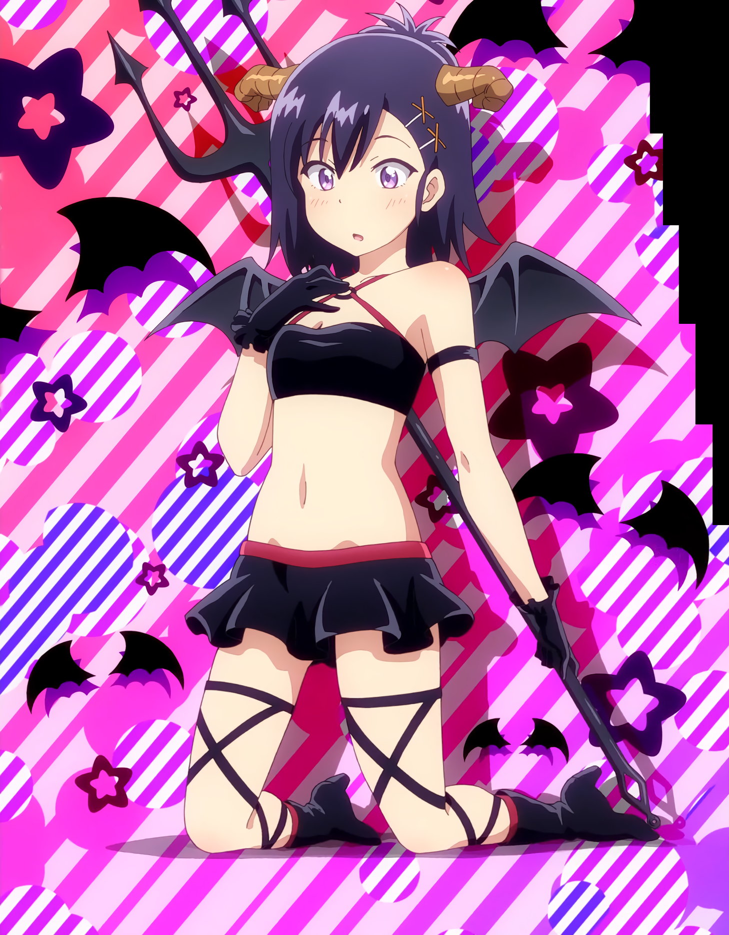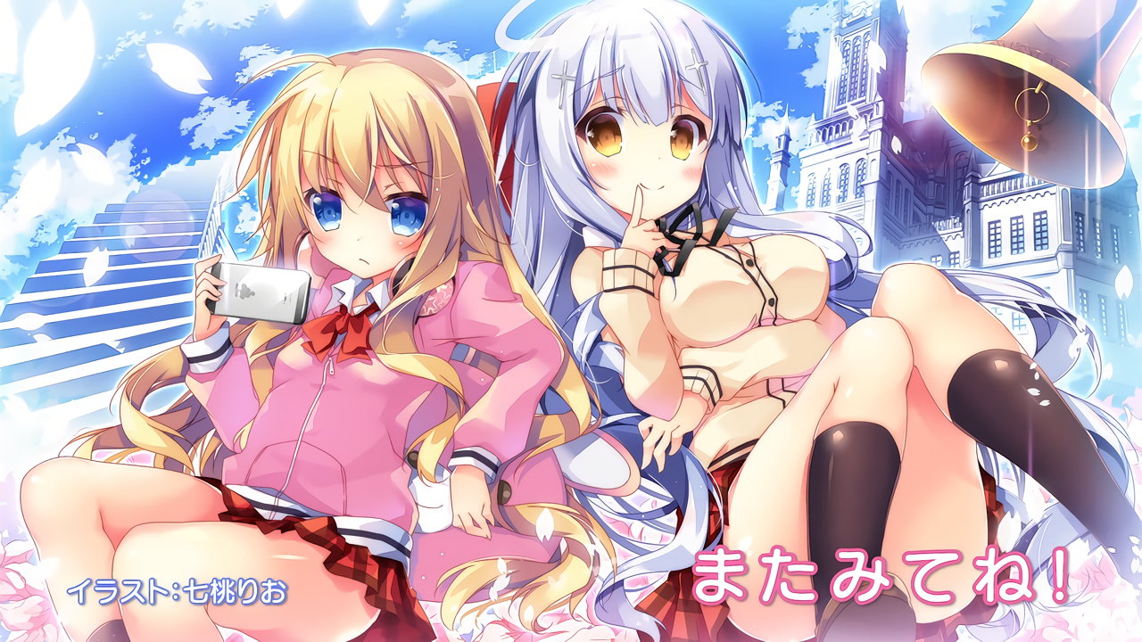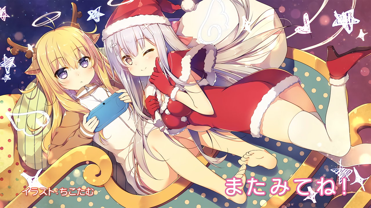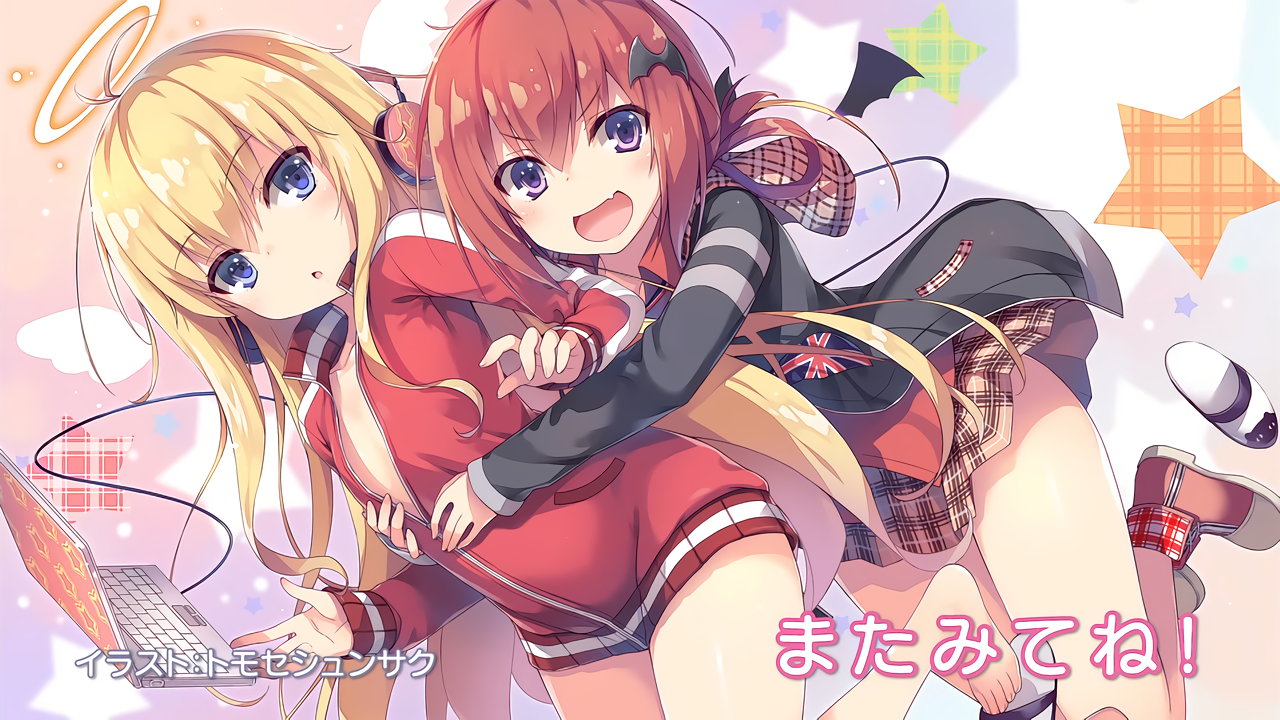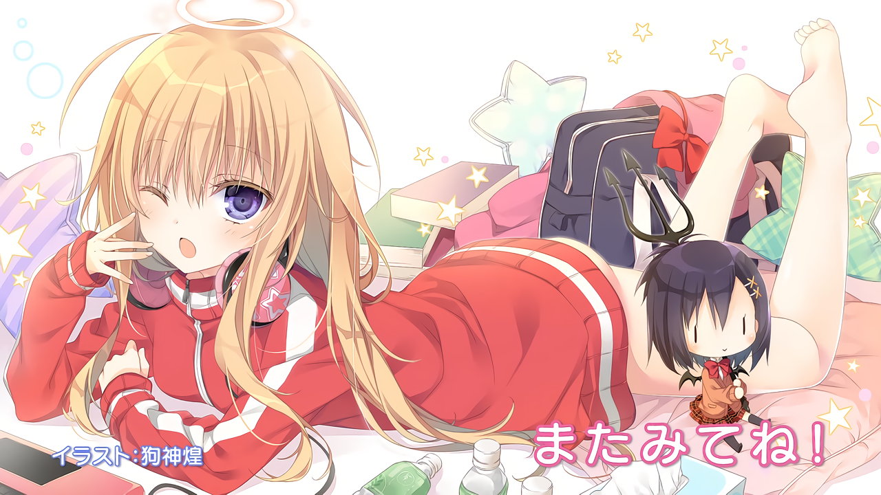 セクシーポーズを取る、天使衣装のガヴリール・ラフィエル、悪魔衣装のヴィーネ・サターニャ。