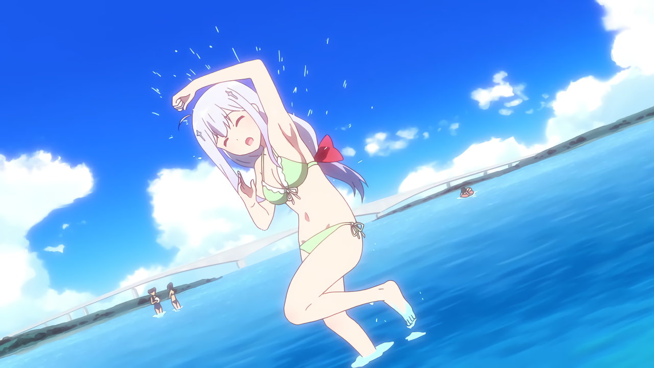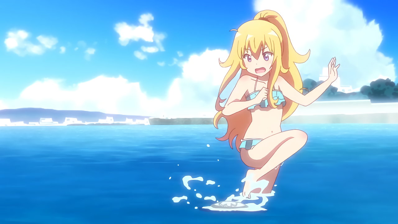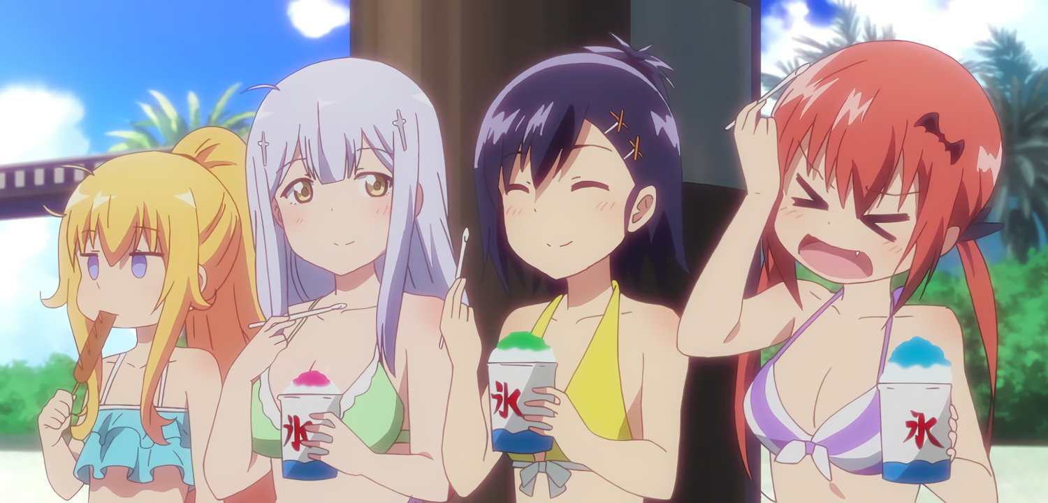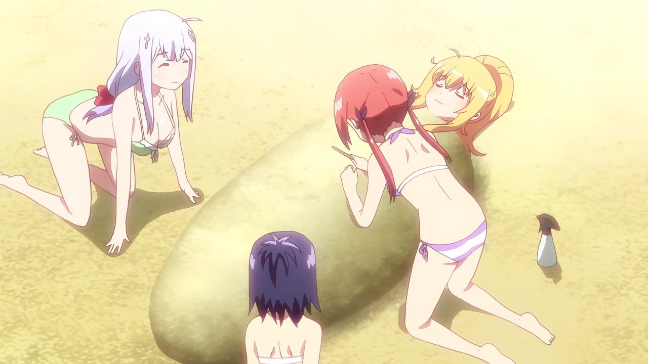 海で遊ぶ、水着姿のガヴリール・ヴィーネ・サターニャ・ラフィエル。