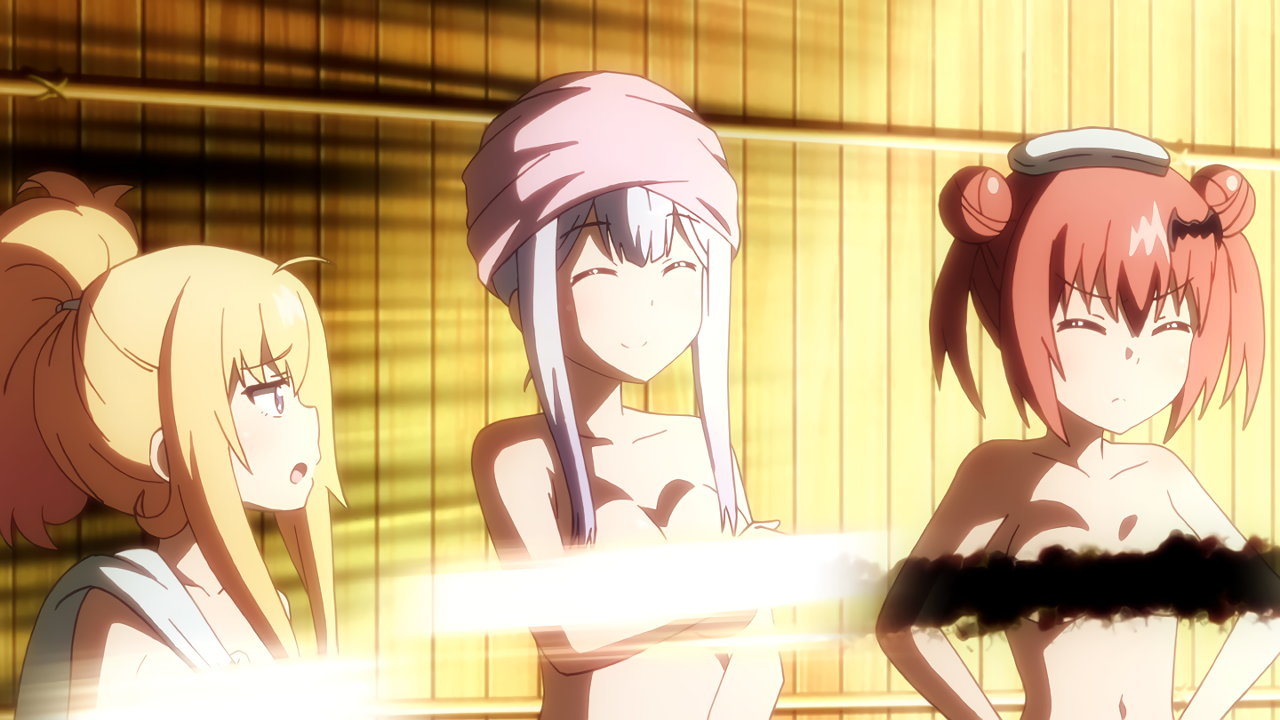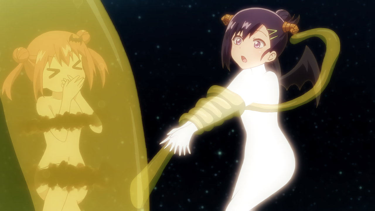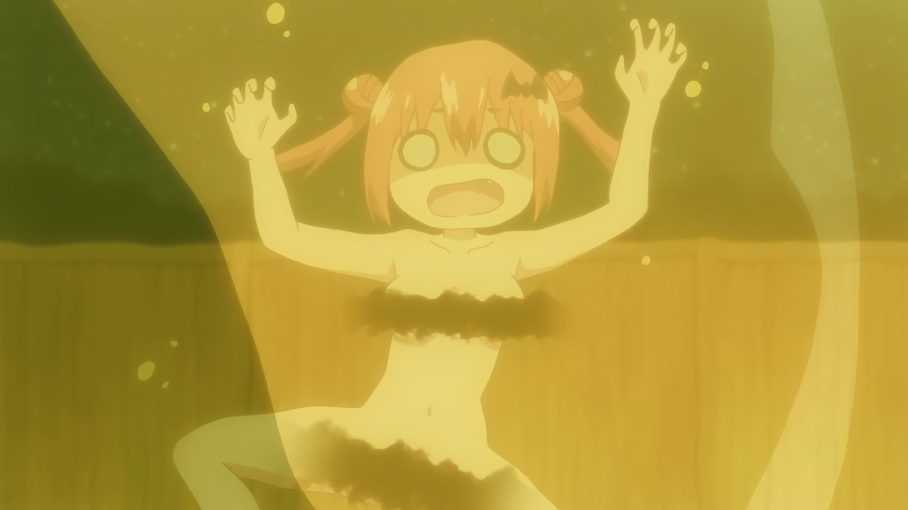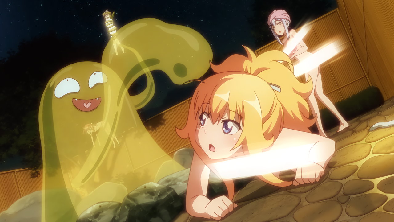 温泉にスライムを召喚するサターニャ。しかし、自分が呑まれてしまう。