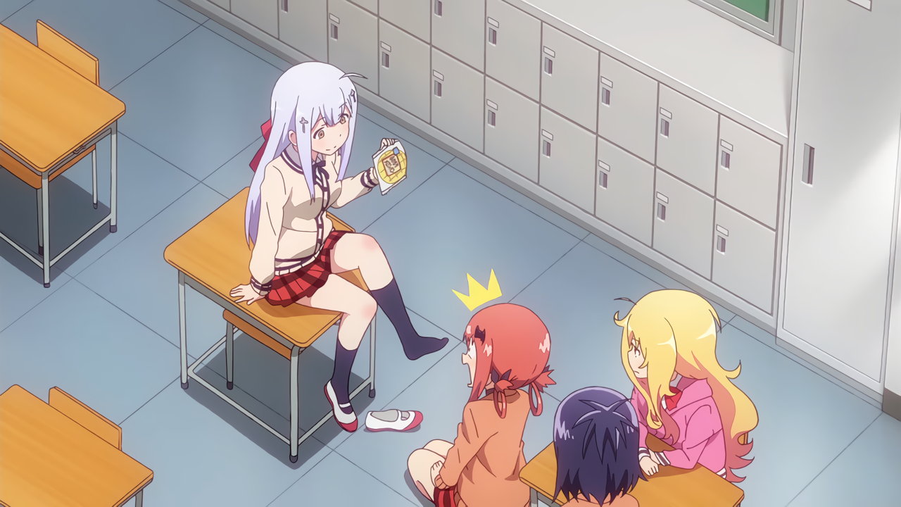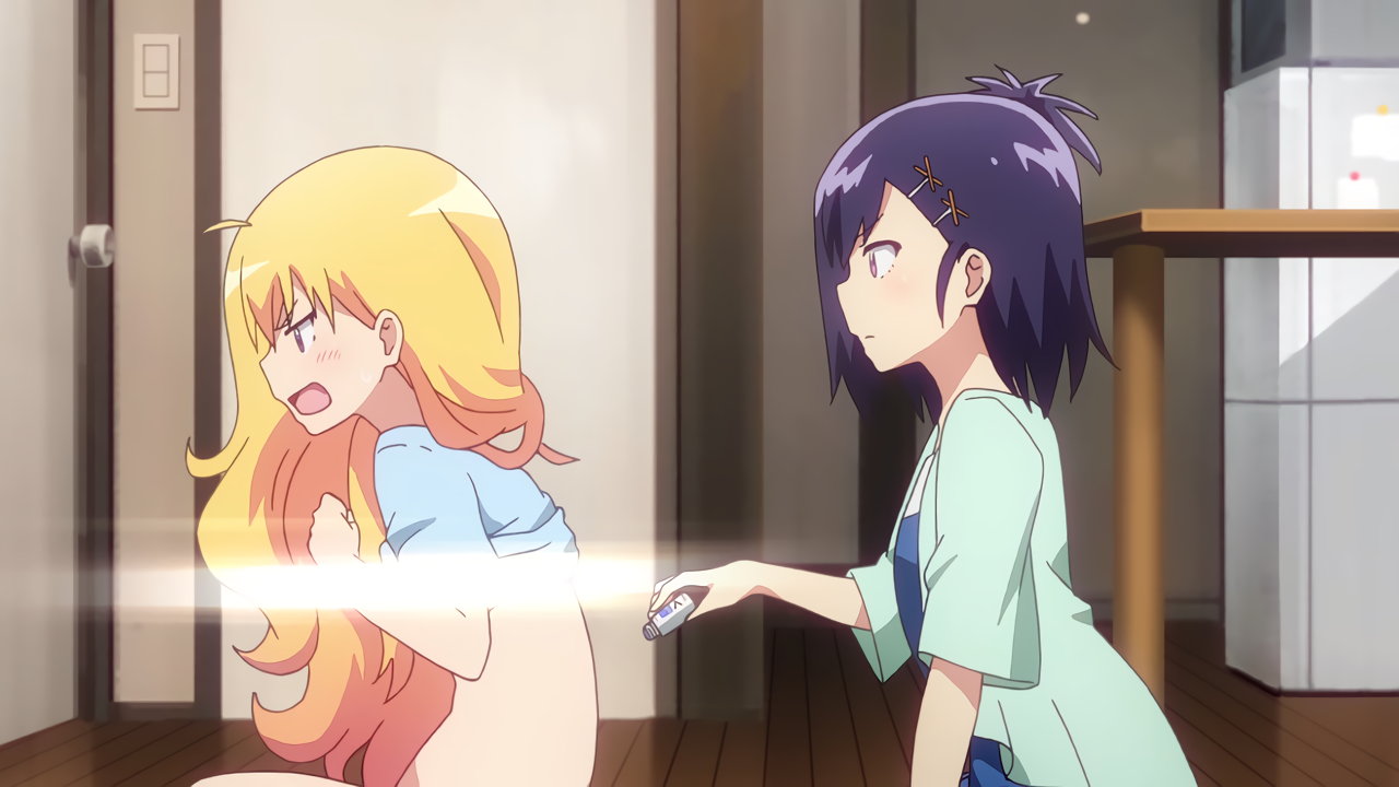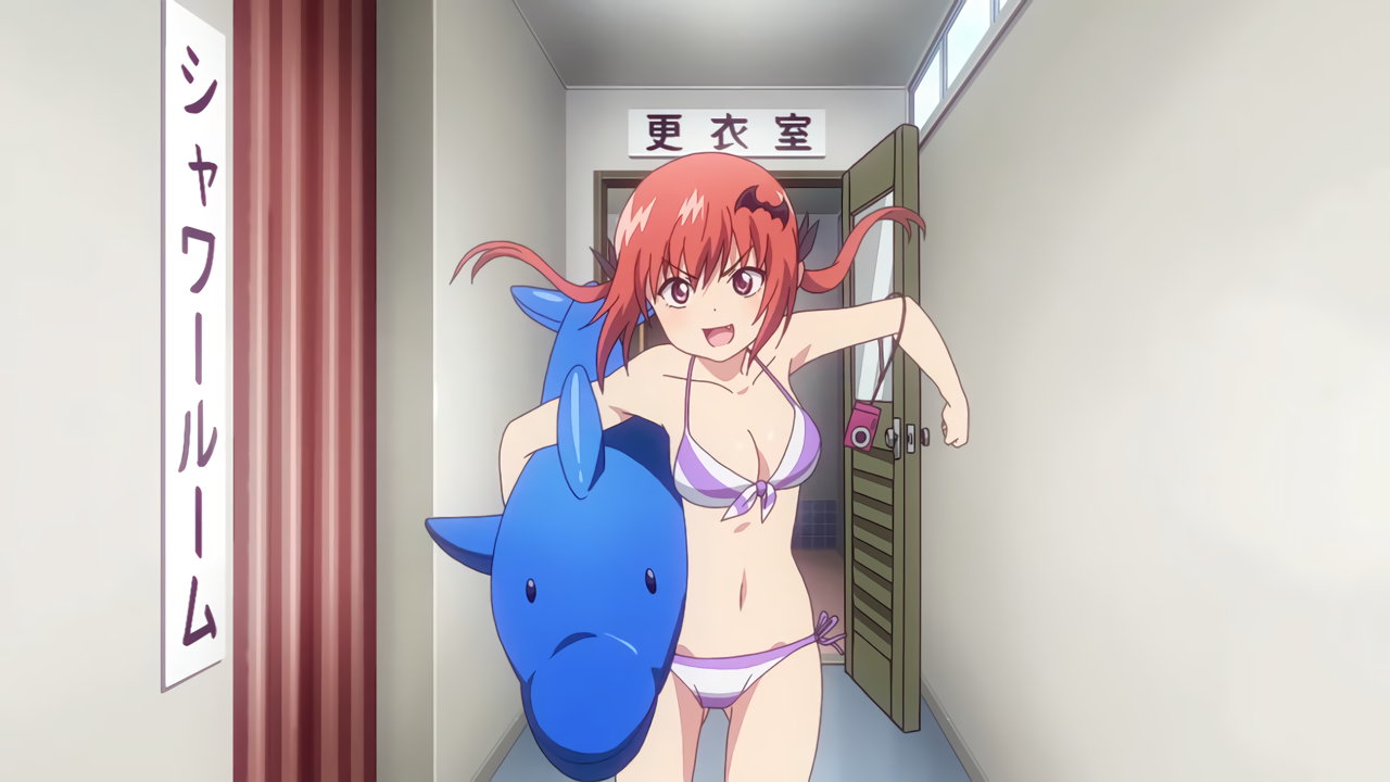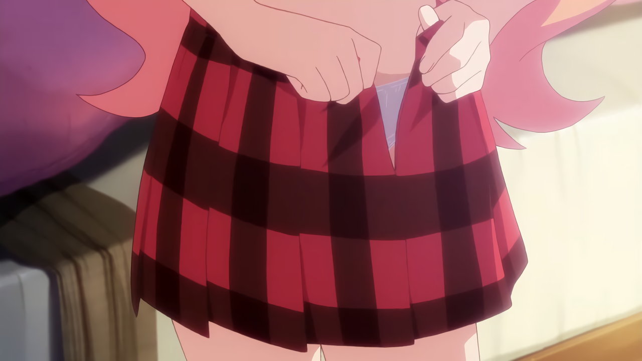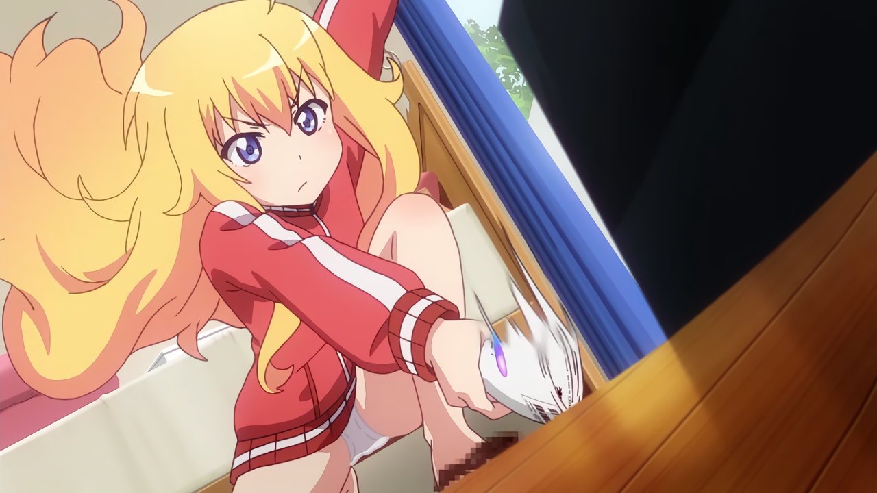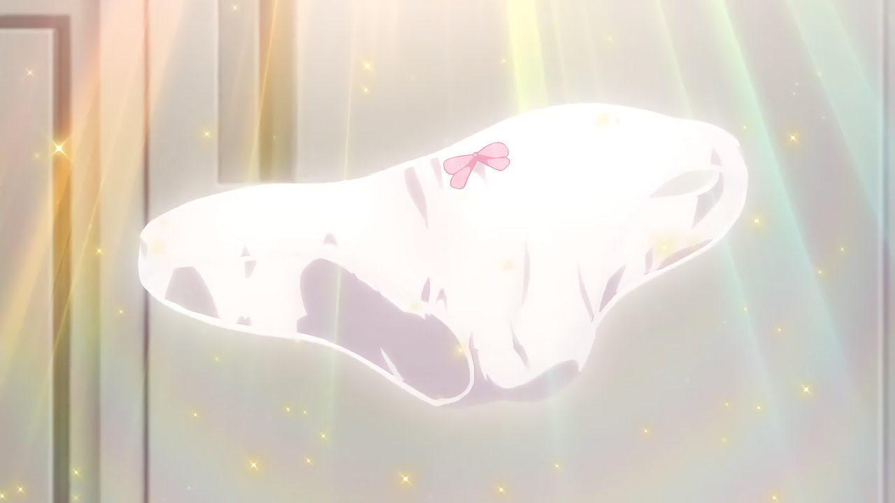 教室への瞬間移動を試みるガヴリール。しかし、誤ってパンツのみ転送させてしまう。