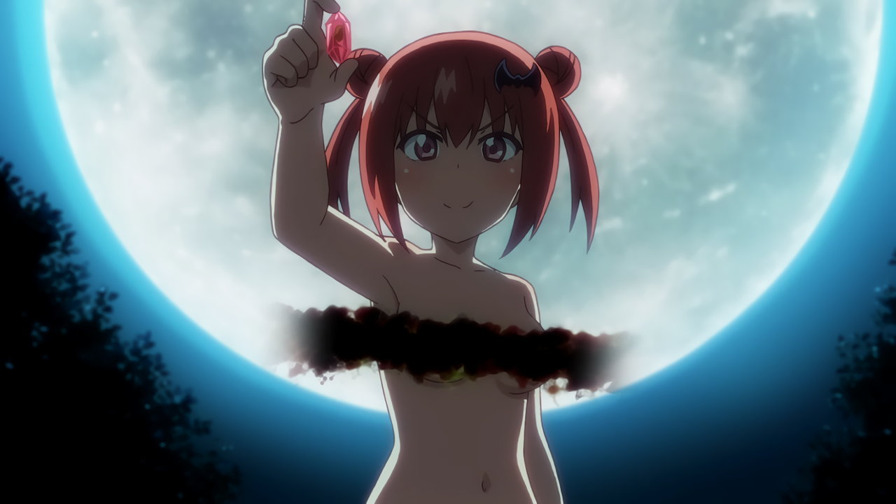 満月を背景に、全裸仁王立ちするサターニャ。