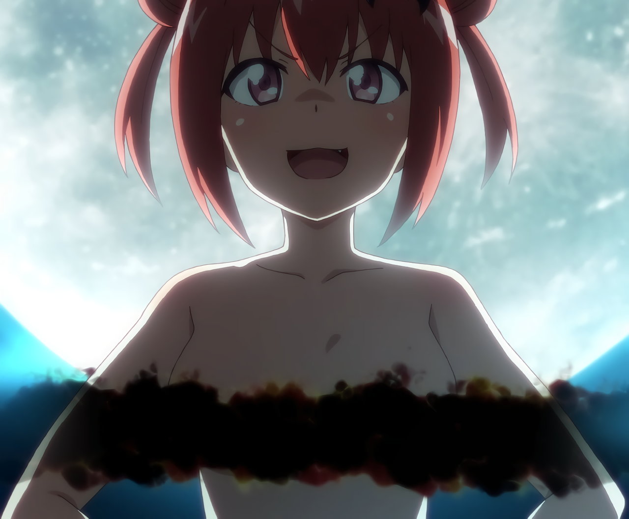 全裸のガヴリール・ラフィエル。局部は光で隠されている。
