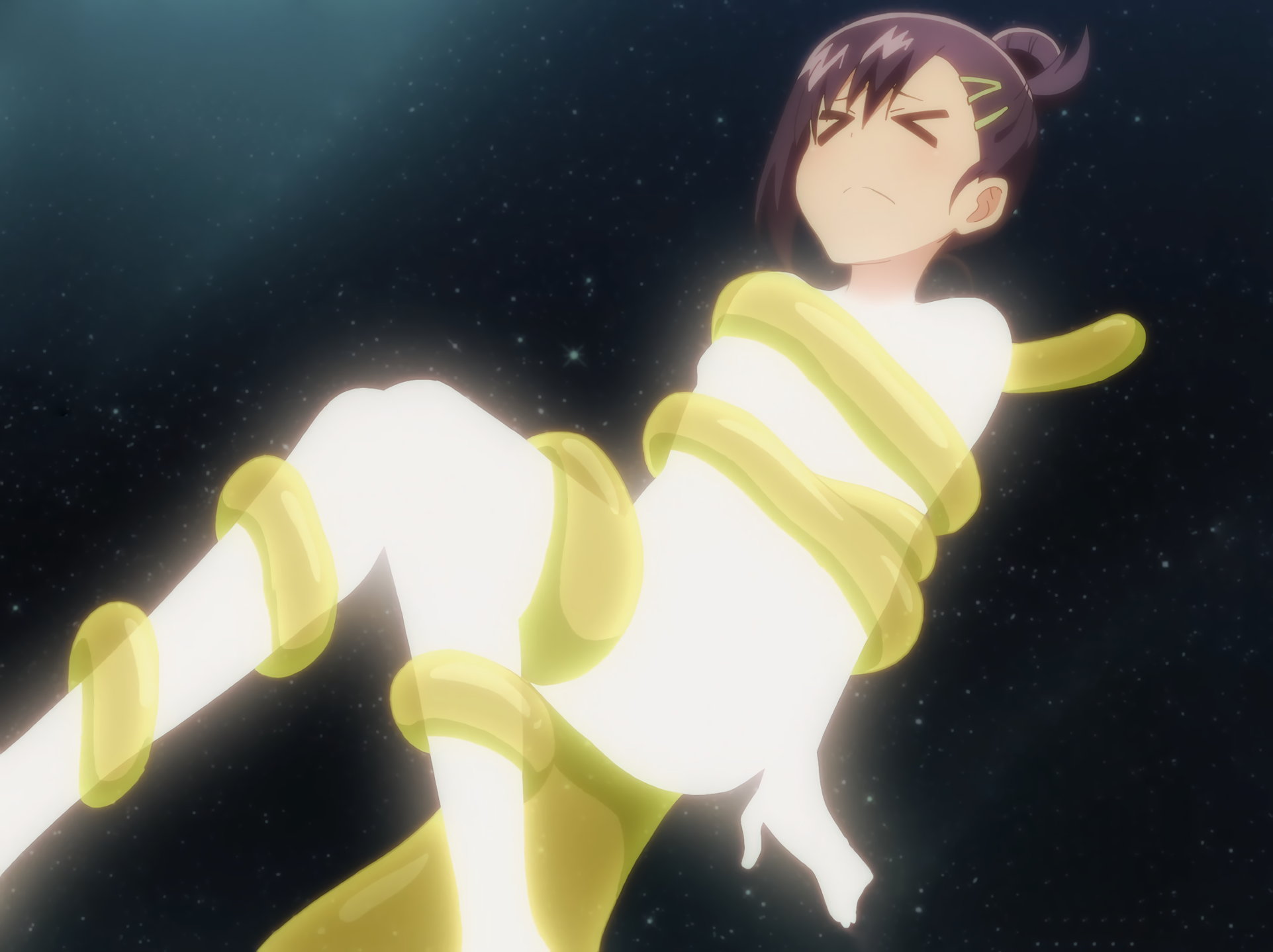 サターニャを救おうとするヴィーネ。しかし、スライムに触手拘束されてしまう。