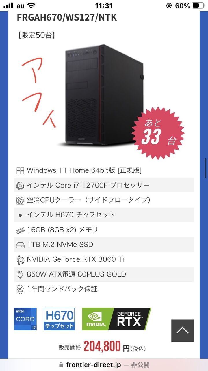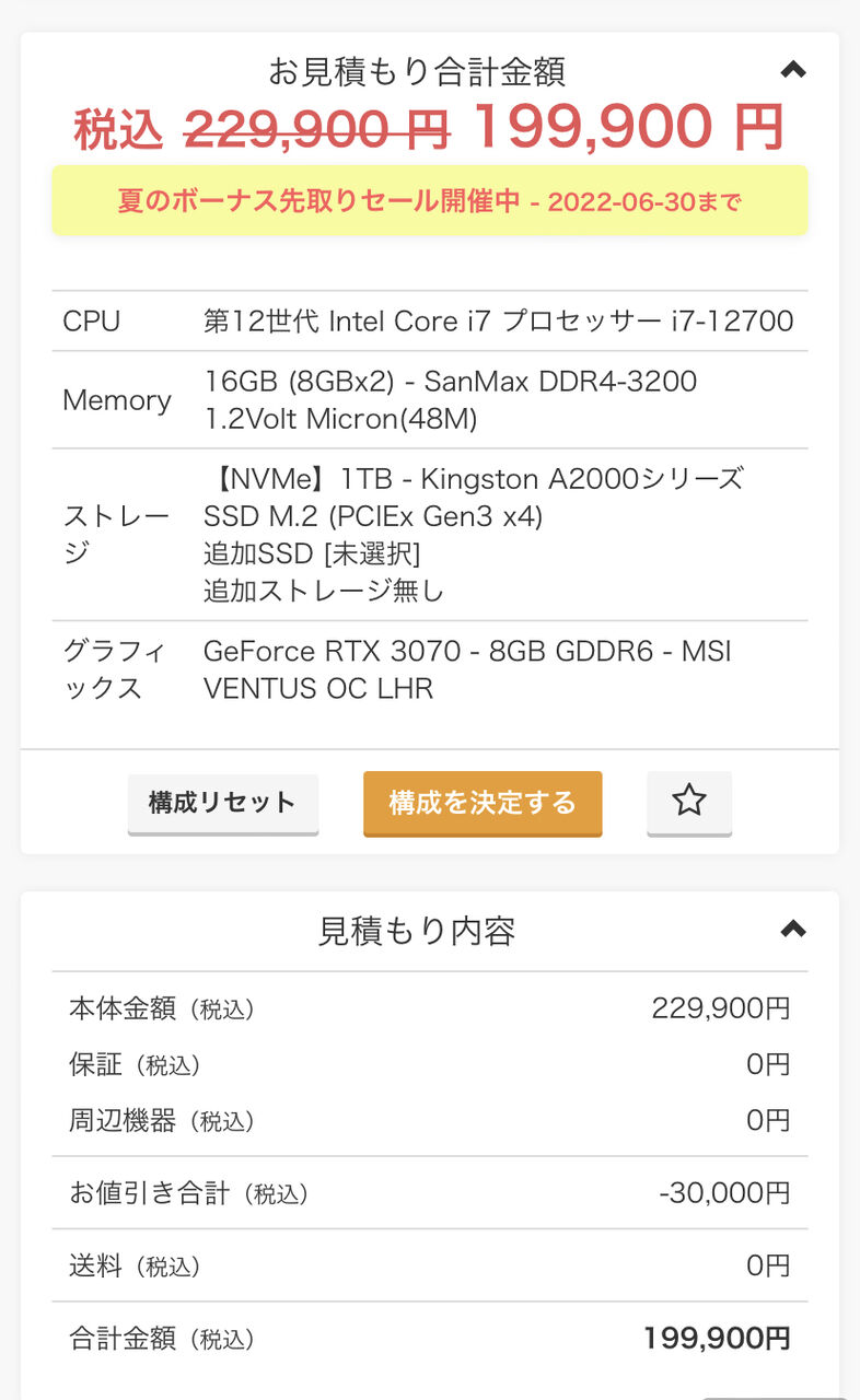 arkならi7 12700 RTX3070かが20万で買えるのに