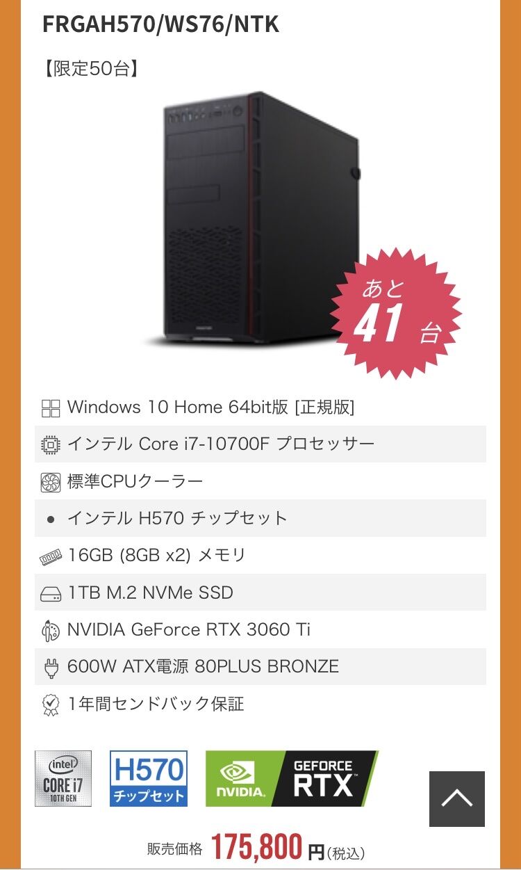 3060ti積んだPC買えるやろ