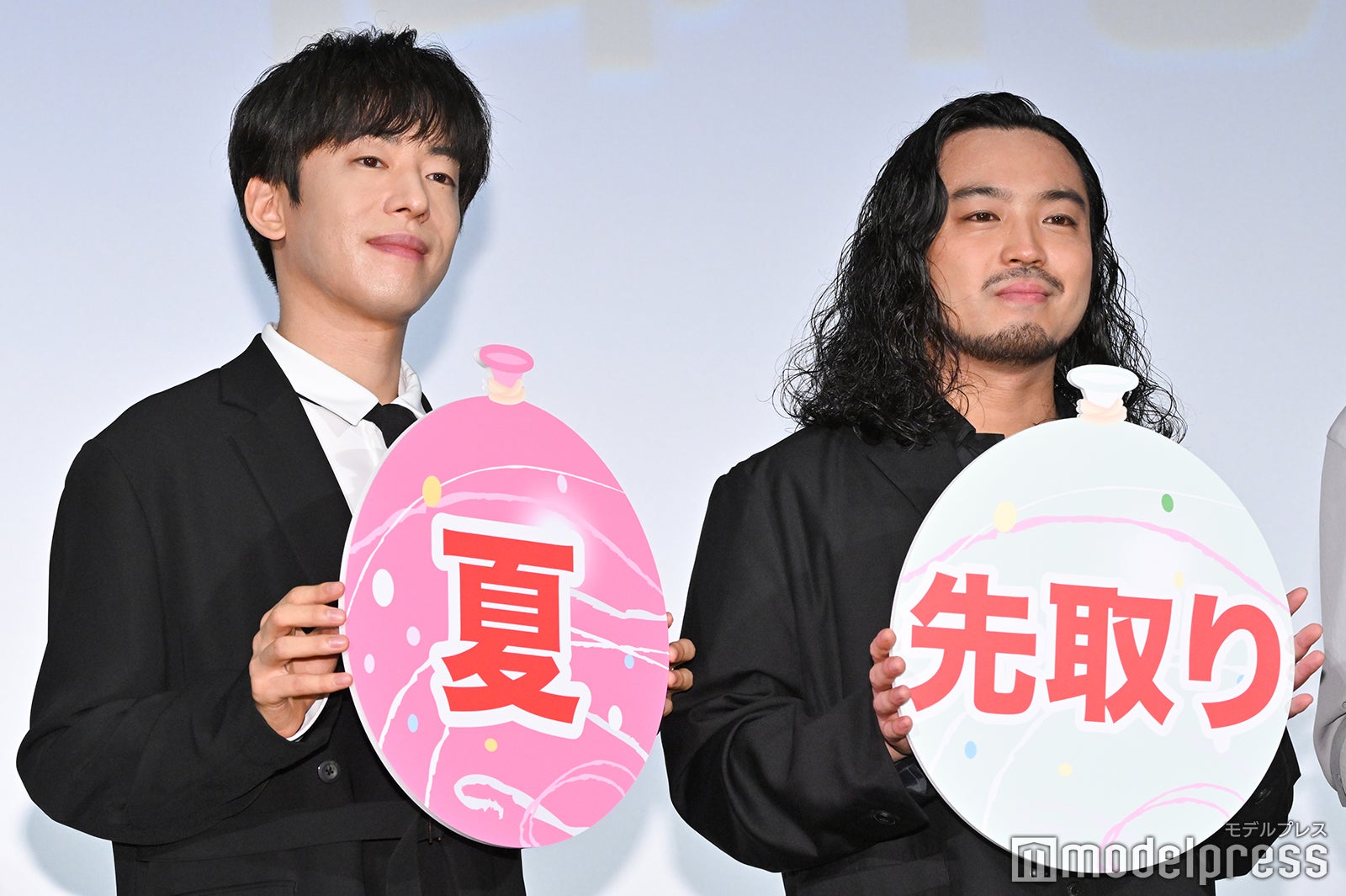 また、主題歌を担当したCreepy Nutsの印象を聞かれると、1度ライブを見に行ったことがあるというMEGUMIは「ラップもDJプレイも“こんなにすごいんだ”ってめちゃくちゃ感動しました。それでトークも上手だし、バラエティにもめちゃくちゃ出てるし、“どないなってん!”って思います。“なんでもできるじゃん”みたいな印象を持っております」と絶賛し、玉木は「お二方を知らないときに曲を聞いたときに、すごくチャラい人たちなんだろうなと思ったんですけど、すごく腰が低くて、今もこういう場に慣れていないからどこに立つんだろうって(迷っていて)かわいい部分もあるんだなって思いました」とコメント。これにCreepy Nutsの2人は「光栄ですね」と声を揃え、松永は「昔から、古い言い方ですけどブラウン管で見ていたお二方なので、そんなことをおっしゃっていただけるなんて…。自分たちと直接、物理的に交わる世界線があるとは思わなかったですね。変な感じです」と語った。