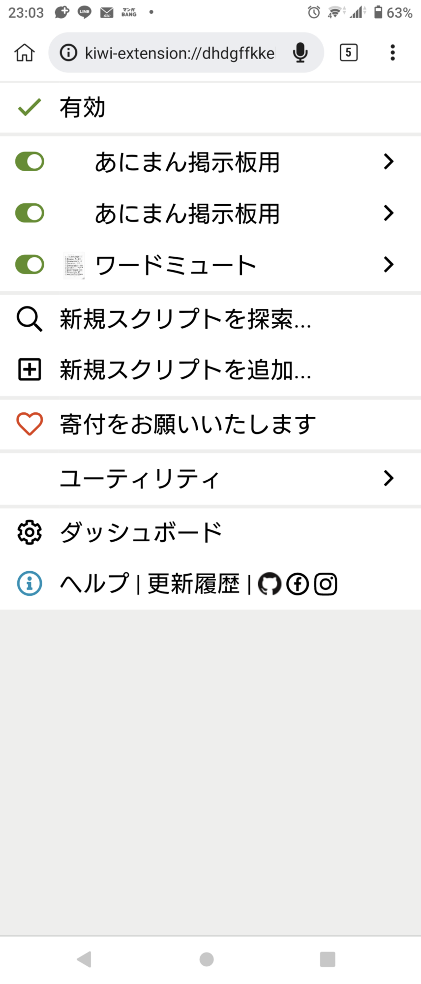- 3◆bjkLbZx1IQ22/05/29(日) 15:01:27このスレでは↓スレで紹介した「あにまん掲示板内のスレやレスを削除済レスからの安価ミュートする」を改良する 具体的には今まで各スレの画面にしか出てこなかったスレミュートボタンをスレ一覧にも出てくるようにする レスをミュートする機能がほしい……|あにまん掲示板だけど管理人ちゃんの手を煩わせることはしたくない……というわけで機能自作の時間だおらーbbs.animanch.com機能の実現は過去にここで教えてもらったTampermonkeyなるchromeの拡張機能を使う方法でやっていく ブラウザに拡張機能を入れる方法とか自作scriptの設定の仕方については それぞれの環境にあわせて↓のどれかを見てくれ ・pc:↑スレの4~7 ・android:↑スレの29~30 ・iphone:iphoneでも機能拡張を使いたい|あにまん掲示板こちらのスレでiphoneでのやり方を説明したものですhttps://bbs.animanch.com/board/519710/抜けが大きすぎて混乱を招いているので、スレ立てて説明し直しますやり方も…bbs.animanch.com※iphoneのはおれが全くわからんけどありがたいことに有識者が建ててくれたスレ