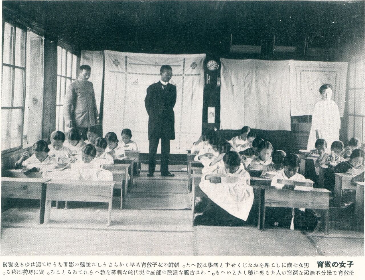 女子教育の写真のキャプションを見ると「良妻賢母教育として幾分不活発な深窓の人たる型に堕とし~」ってあるけど