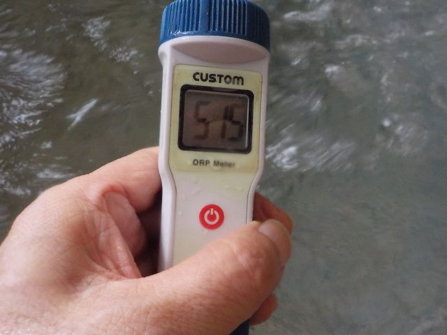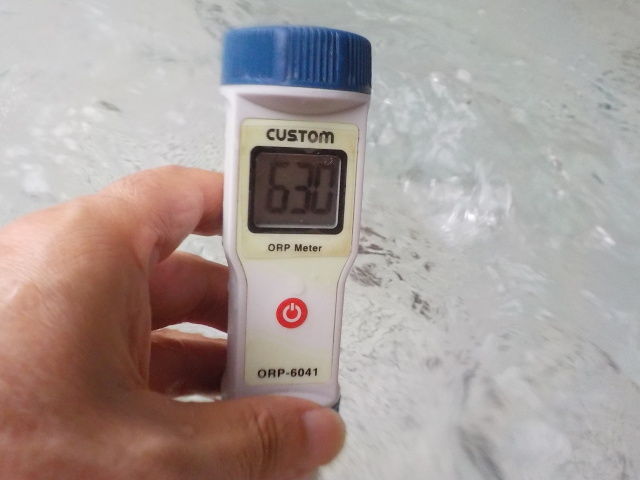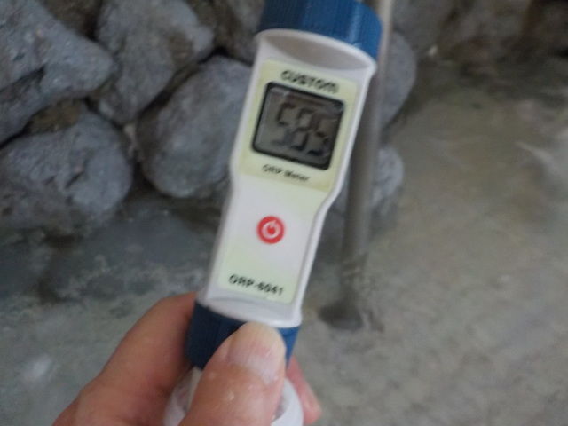 浴槽:温度42.3℃、pH7.7、ORP値は585mvに収束した。