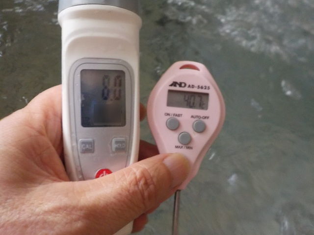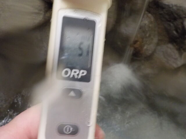 湯口:温度41.3℃、pH7.9、ORP値は537mvに収束した。