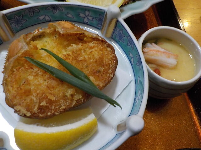 毛ガニ、焼き魚