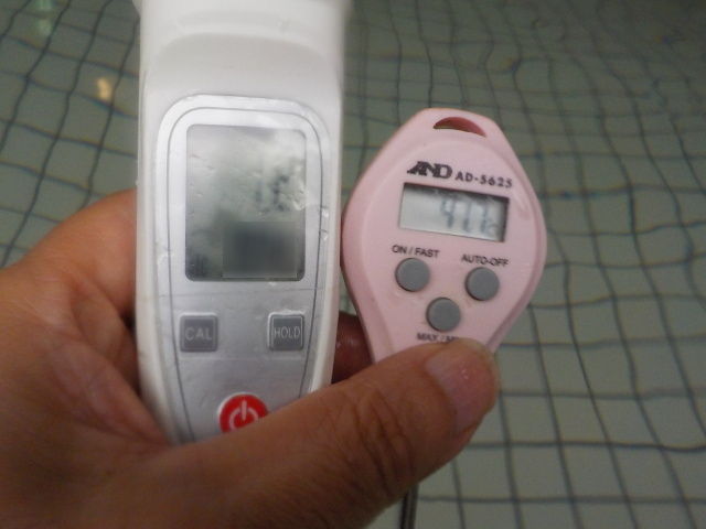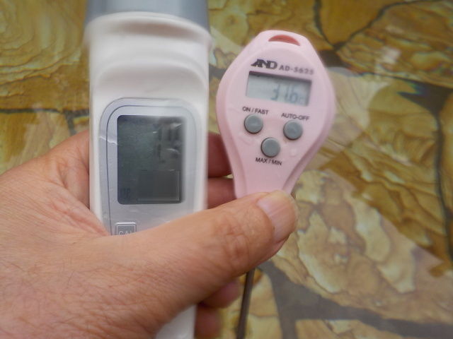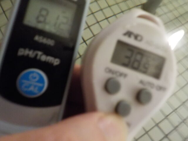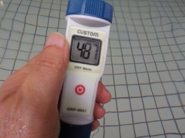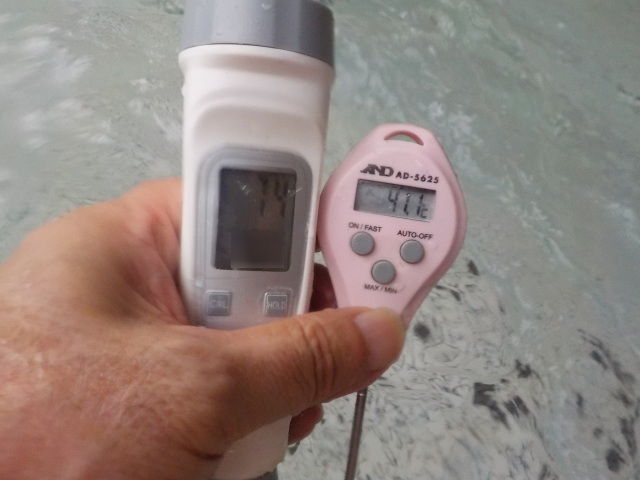 浴槽:温度38.9℃、pH8.12、ORP値は40mvに収束した。