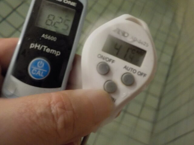 浴槽:温度41.4℃、pH8.25、ORP値は88mvに収束した。