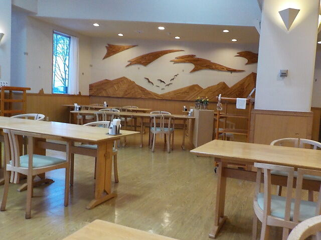 食事はレストラン「コマクサ」でとる。夕食は5時~8時(LO7時30分)、朝食は7時~8時30分。夕食は希望時間指定あり。