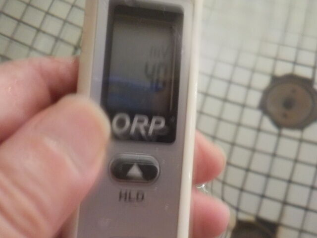 2018/9/24、12時20分~13時10分、浴槽内でORP計測。 加温循環ろ過方式で、塩素系薬剤使用。