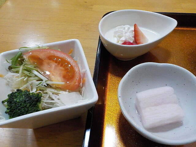 サラダ・漬物・デザート、後出しの天ぷら