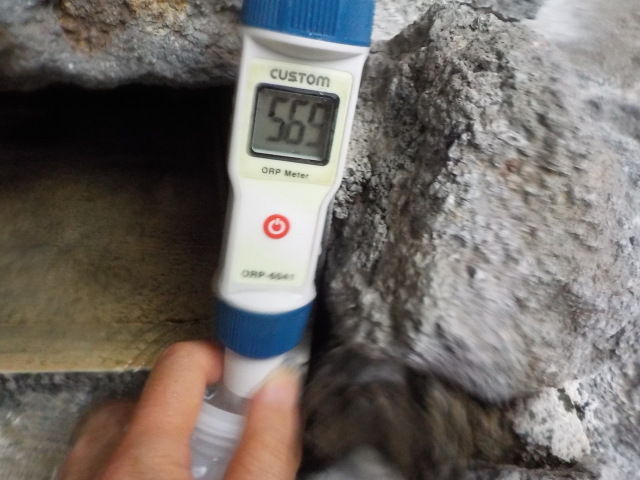 湯口:温度38.2℃、pH8.22、ORP値は51mvに収束した。
