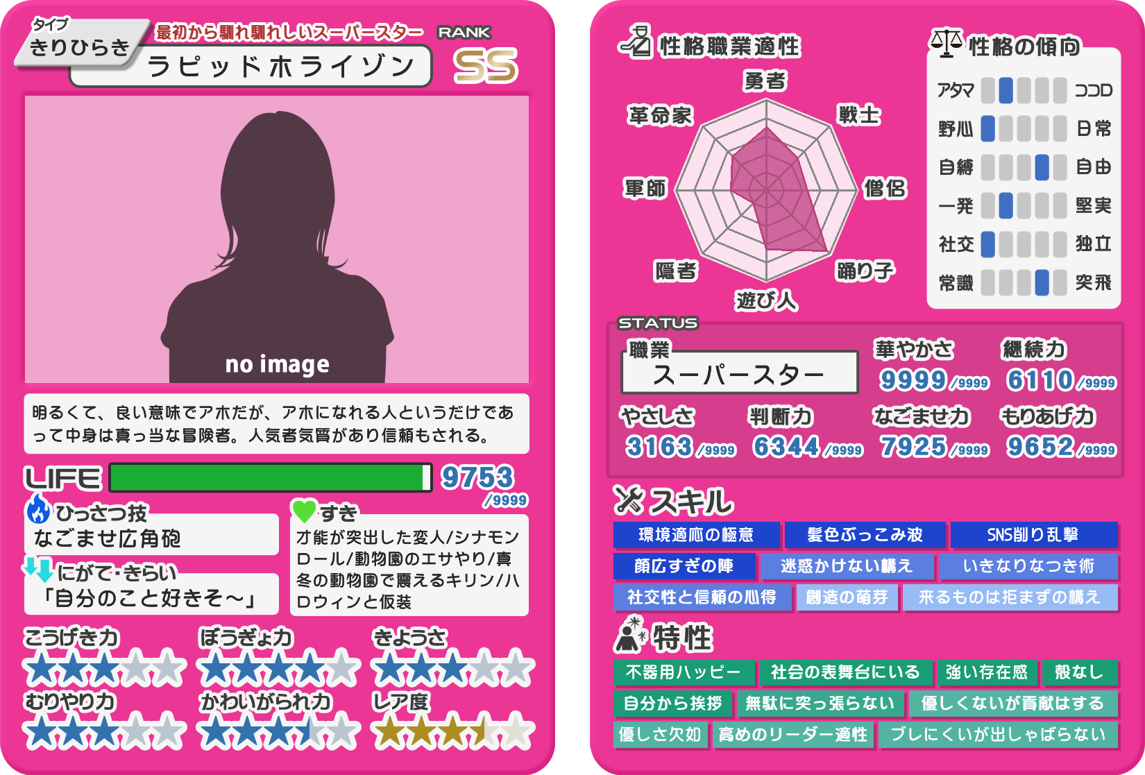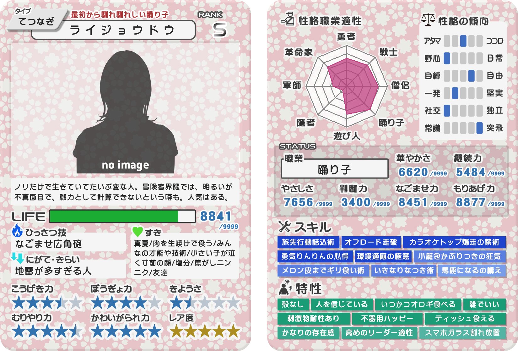 かわいがられ力高い上に攻撃力低くて回避も防御も甘いあたり小動物感がすごい