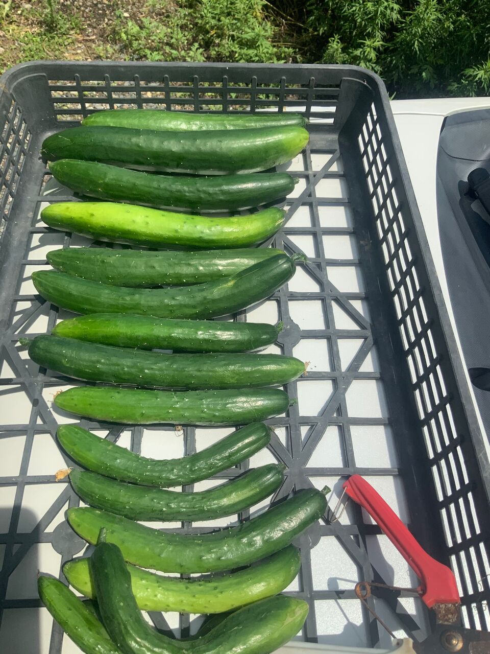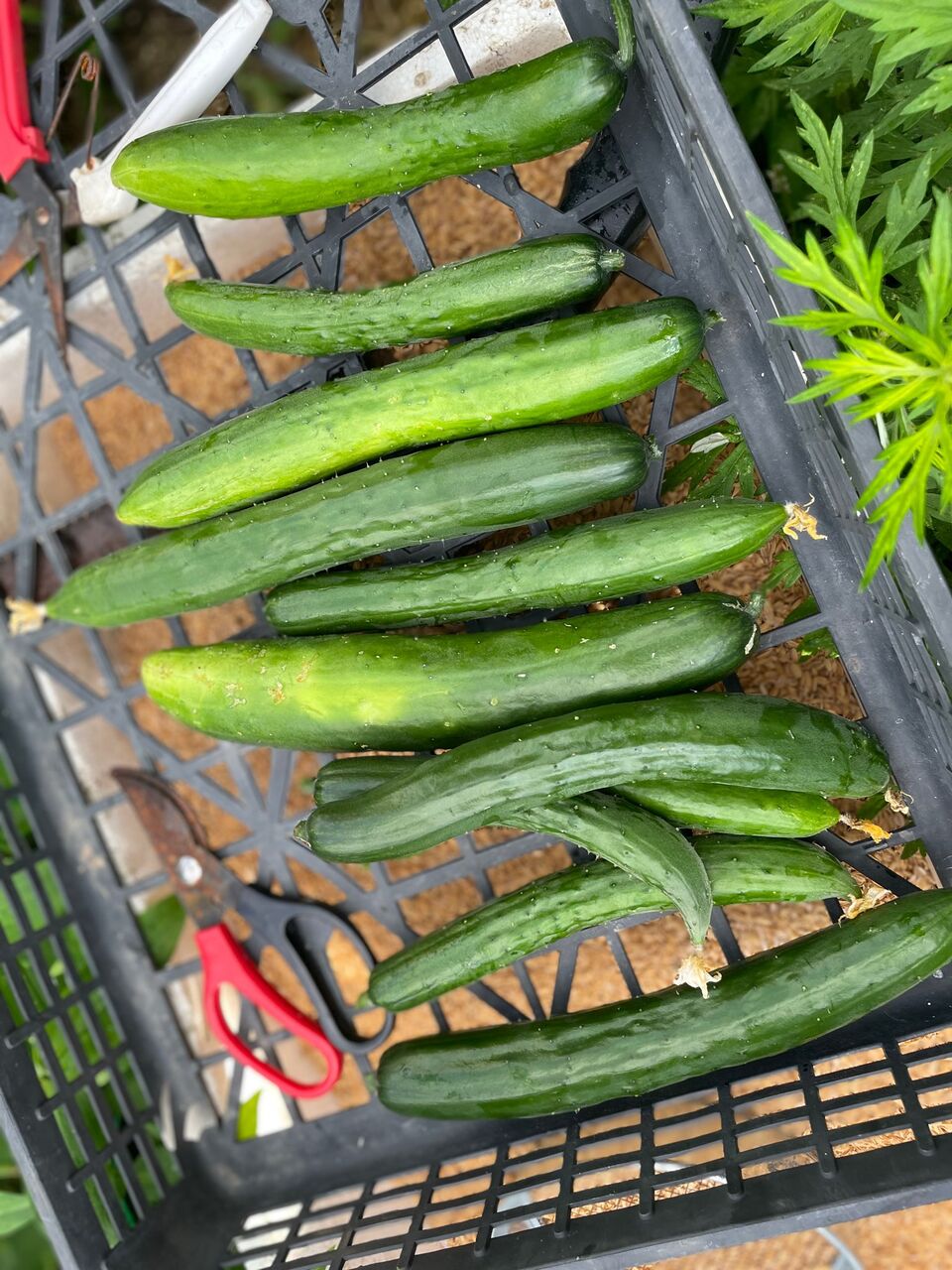 真ん中らへんにあるキュウリがスーパーで売っているサイズです。
