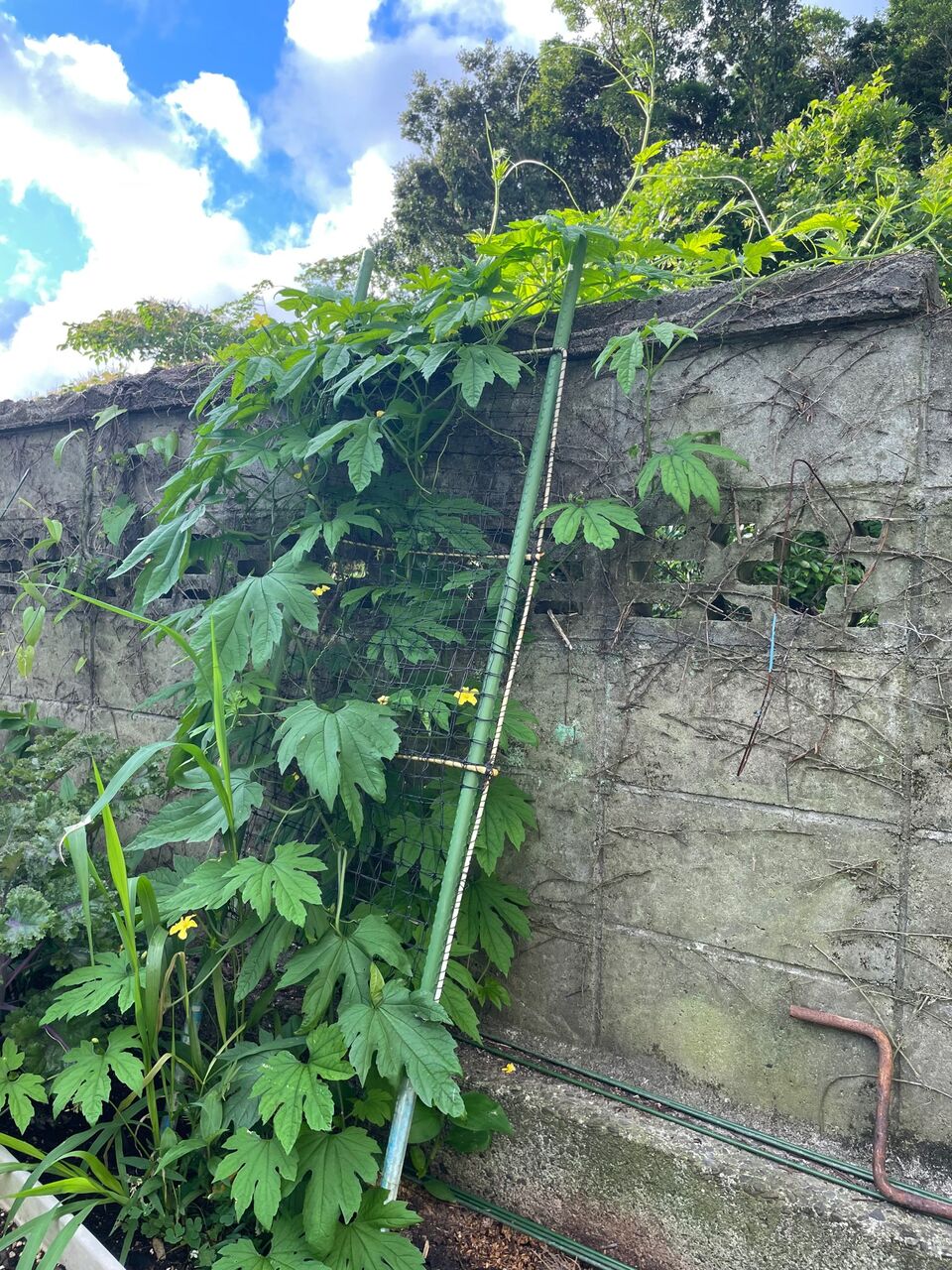 ゴーヤのように専用のネットがあった方がいいですね。途中からネットつけるのちょっと大変だった。