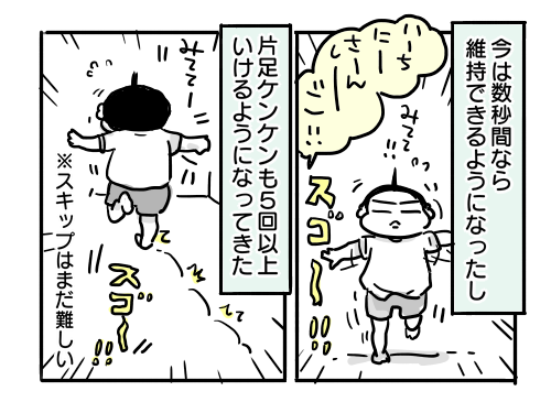 家で片足ケンケンを披露してくれて