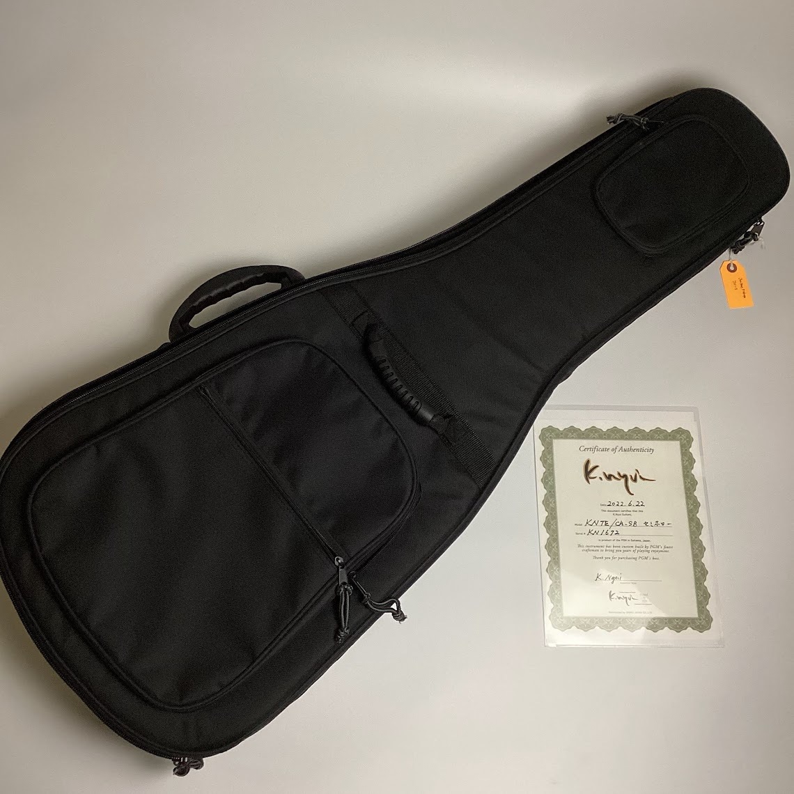 様々なギターブランドの製作を手掛ける国内屈指のギター工房PGM、そのPGMの代表である乳井氏本人がスタートしたプライベートブランド、K.nyui Custom Guitars。プライベートブランドである本器はもちろん材の選別から組み込みに至るまで乳井氏本人が直接携わっており、質感/鳴り共に圧倒的なクオリティーに仕上がっております。