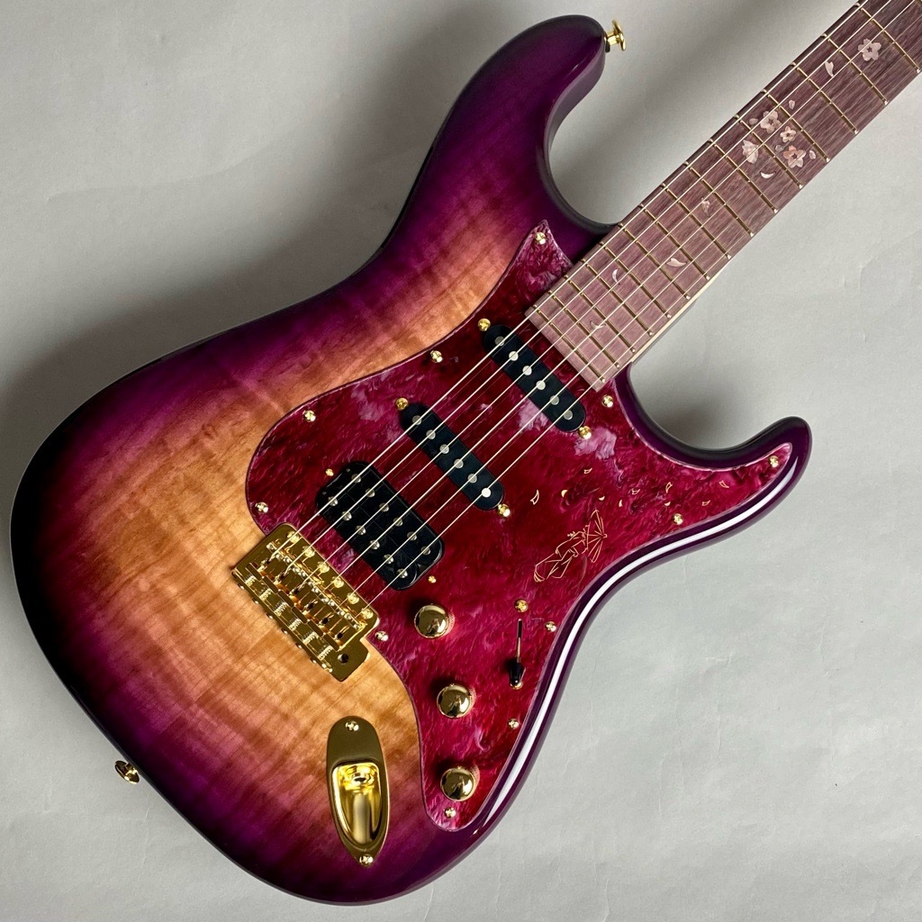 ボディトップにフレイムが出た桜を採用した、ディバイザー大商談会2022限定の桜ギター。