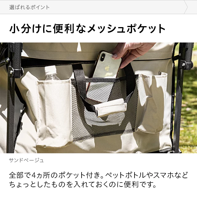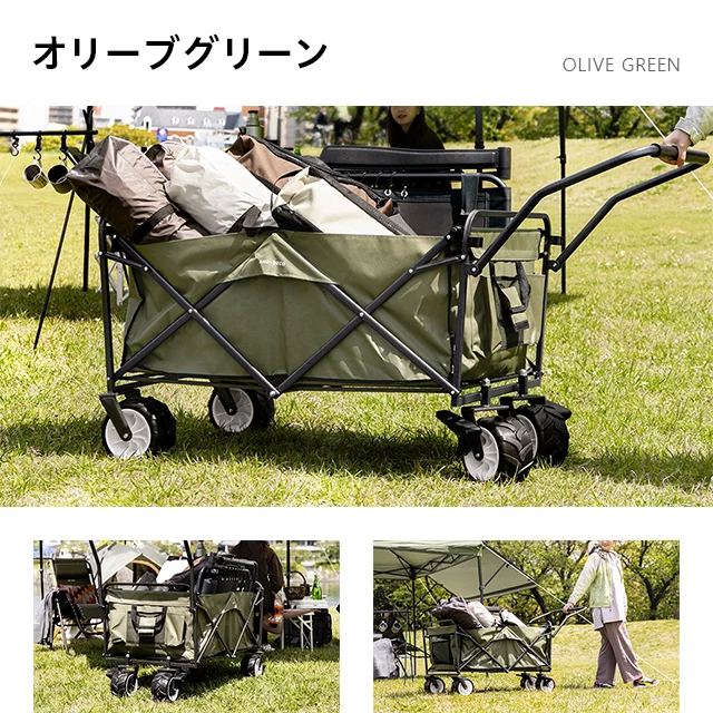 荷物をまとめて運べる大容量キャリーワゴン 約190L積み込める大容量サイズで、かさばるレジャー用品を一気にまとめて運ぶことができます。ワイドタイヤでハードな道も安定した走行ができ、ラウンドホイールで小回りも自由自在です。あらゆるレジャーシーンで活躍すること間違いなしの一台!