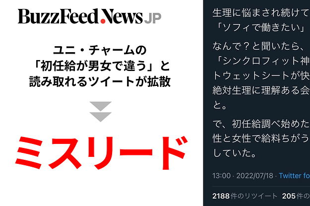 「なんで性別で賃金に格差つけるんだろ」と引用リツイートしている人もいるが、BuzzFeed Newsの取材に同社は「そのような事実はない」と否定した。