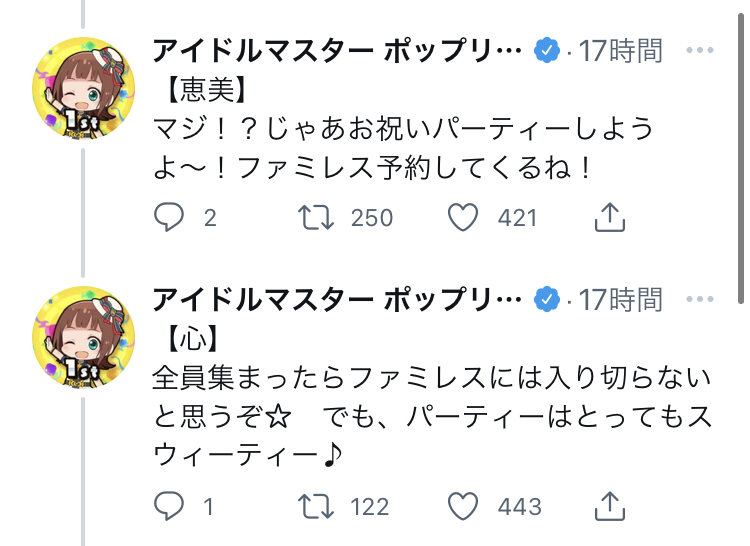 流石に海美2人も描いたらおかしい事に気づくから周年絵に海美いないのバラされたとか言ってごめんなさい!!!