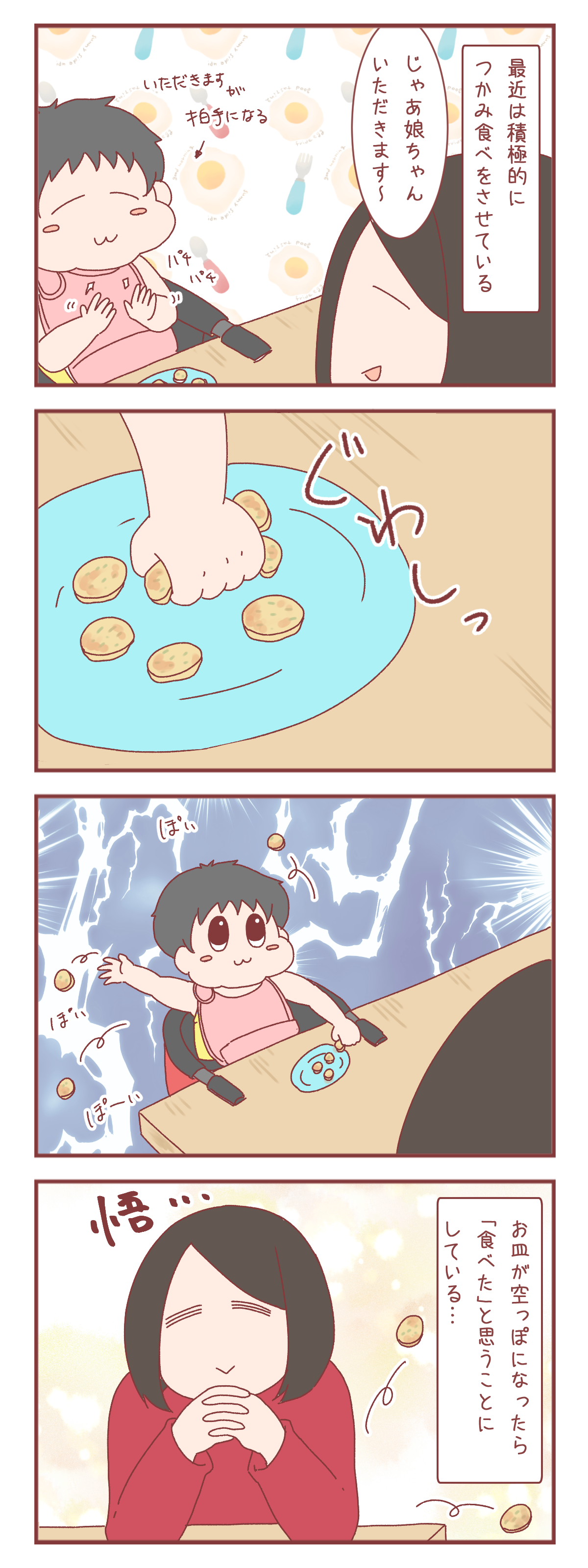 同月齢のママさんの「うちの子、スプーン上手!」という言葉にヒュッと焦りを飲み込みつつ、今日もごはんをポイポイされてます。