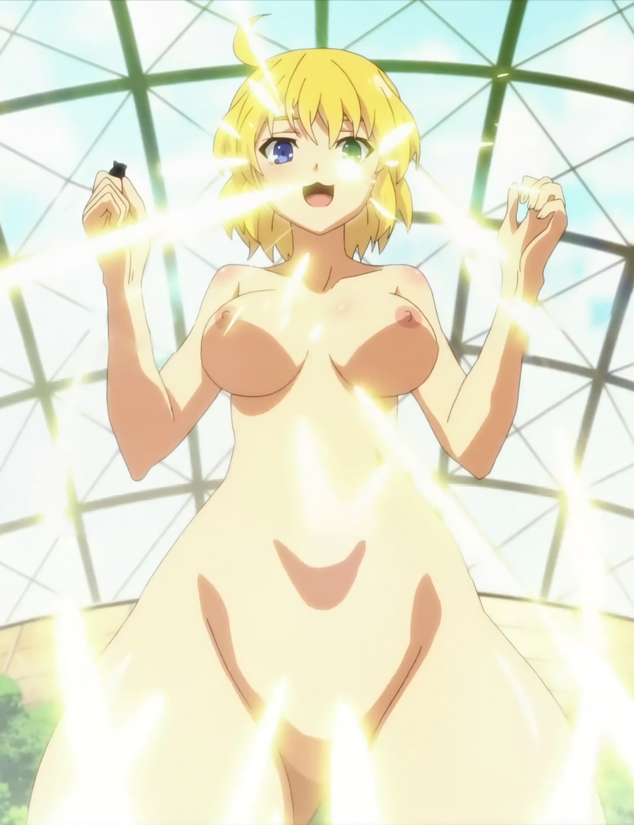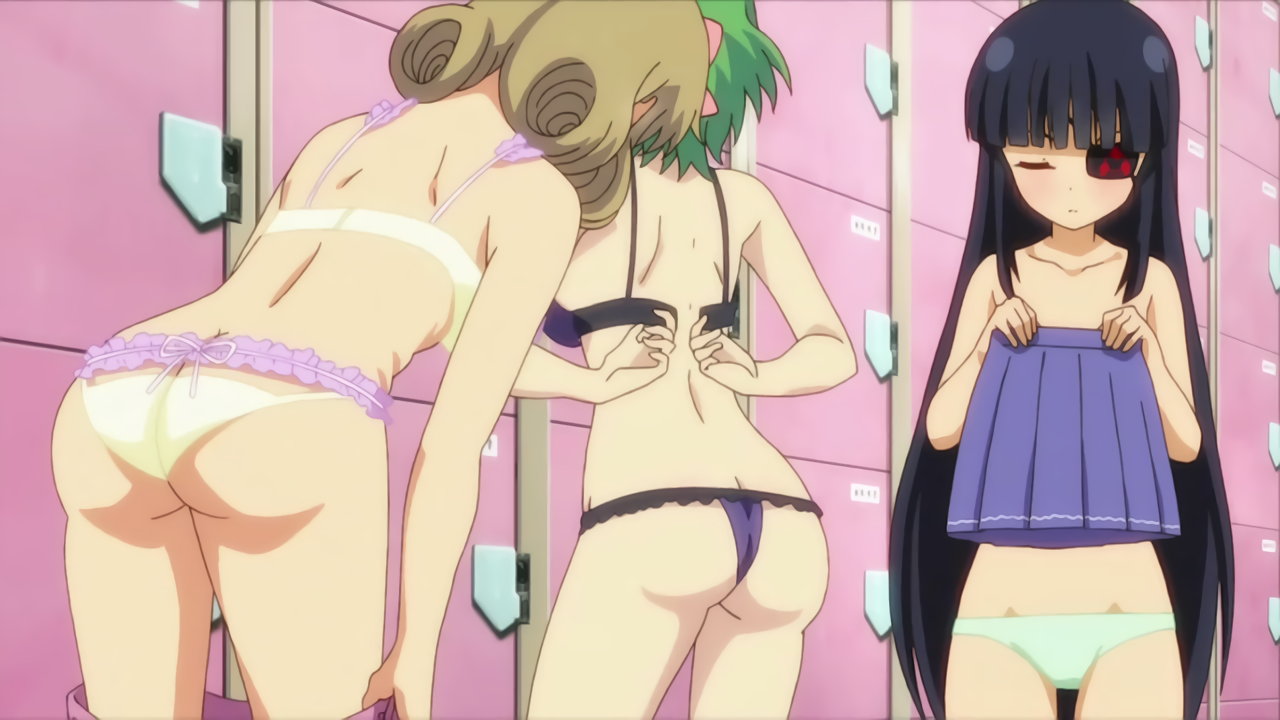 脱衣中、詠に乳首を見せる斑鳩。