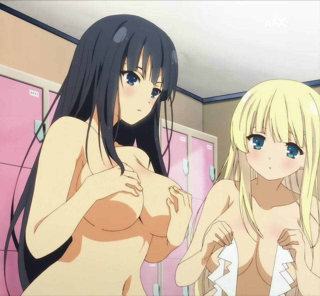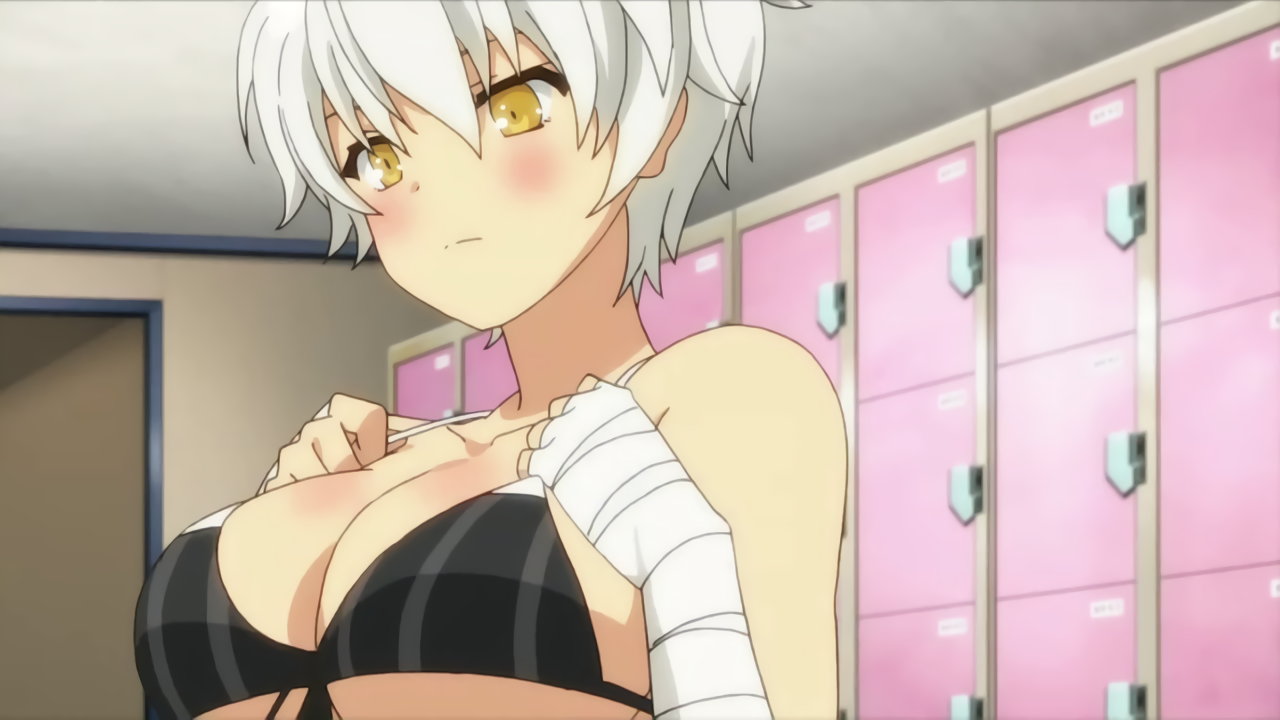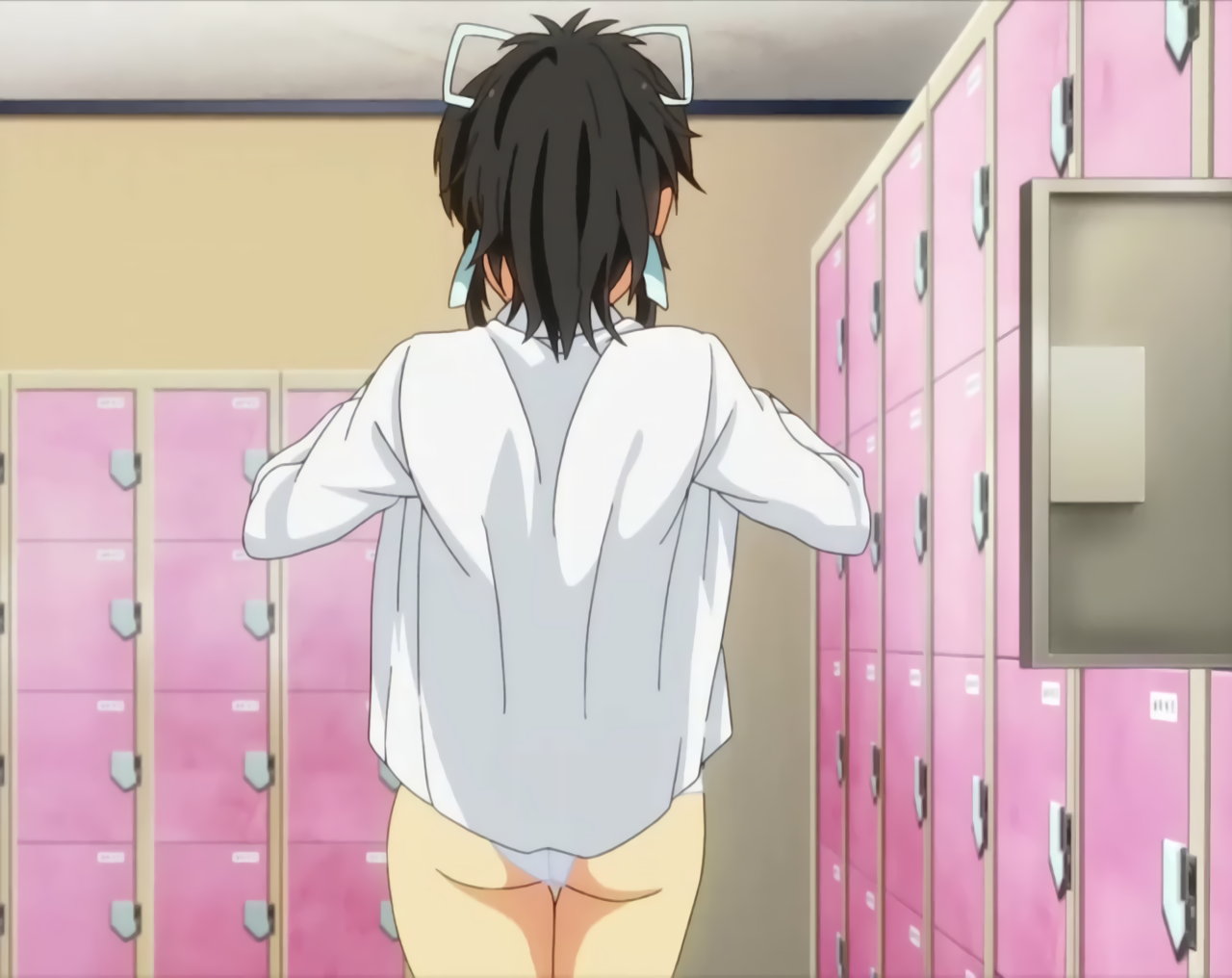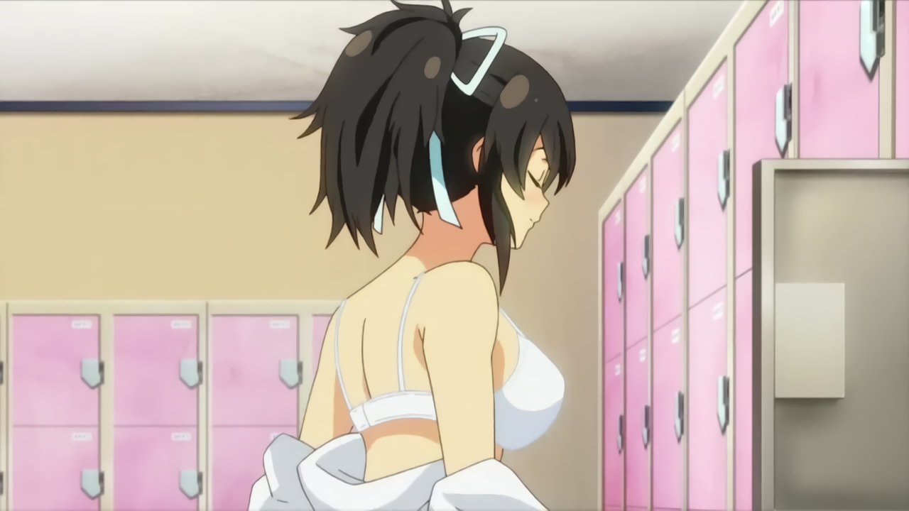 更衣室にて脱衣中の飛鳥。