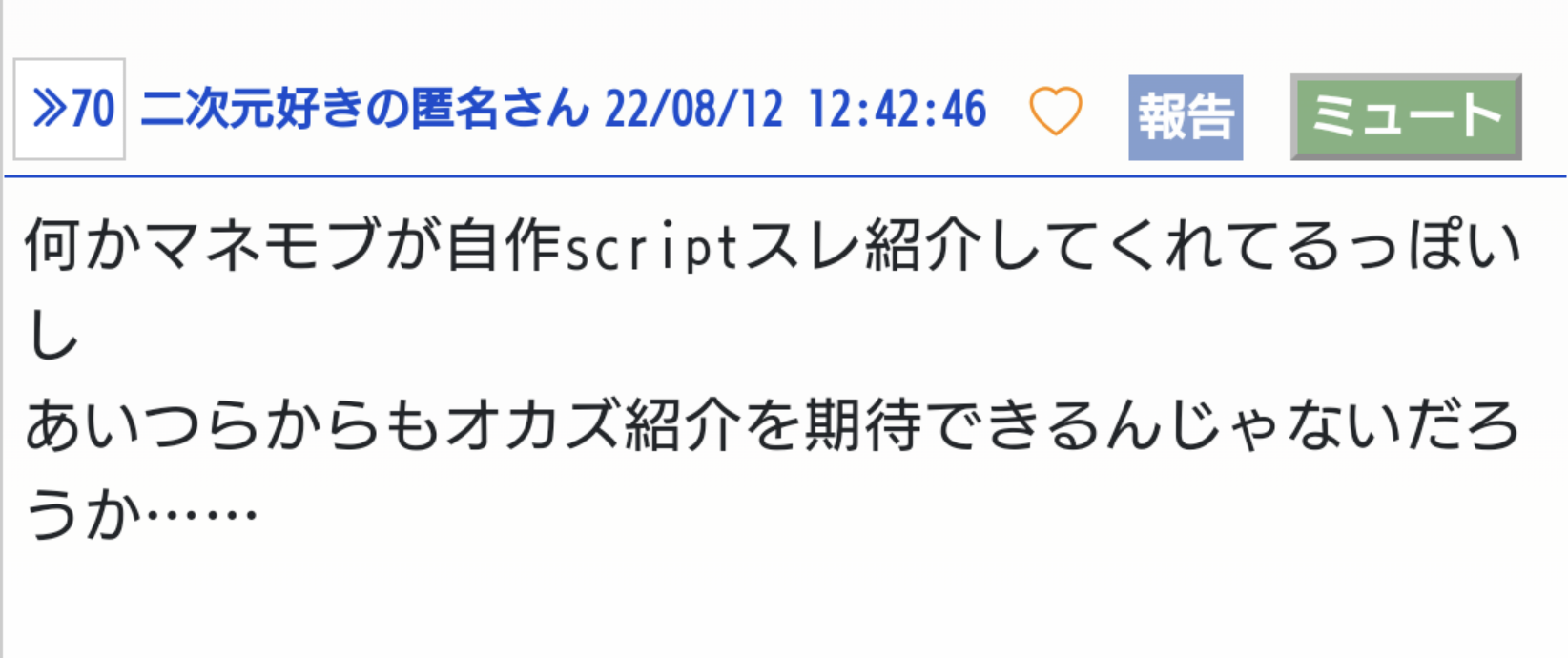 もう試したんですがこの”script”を使うだけでとても快適なあにまんライフが送れるんですよ