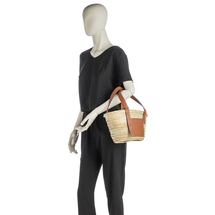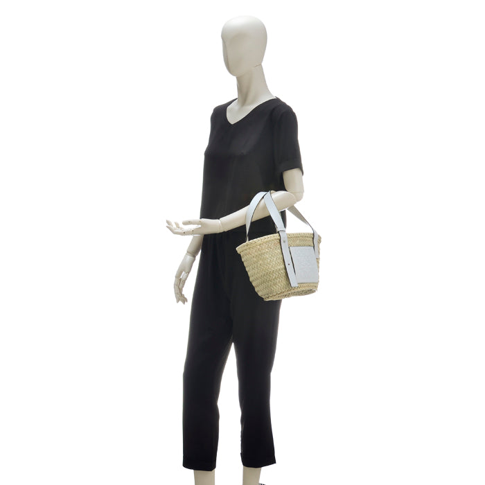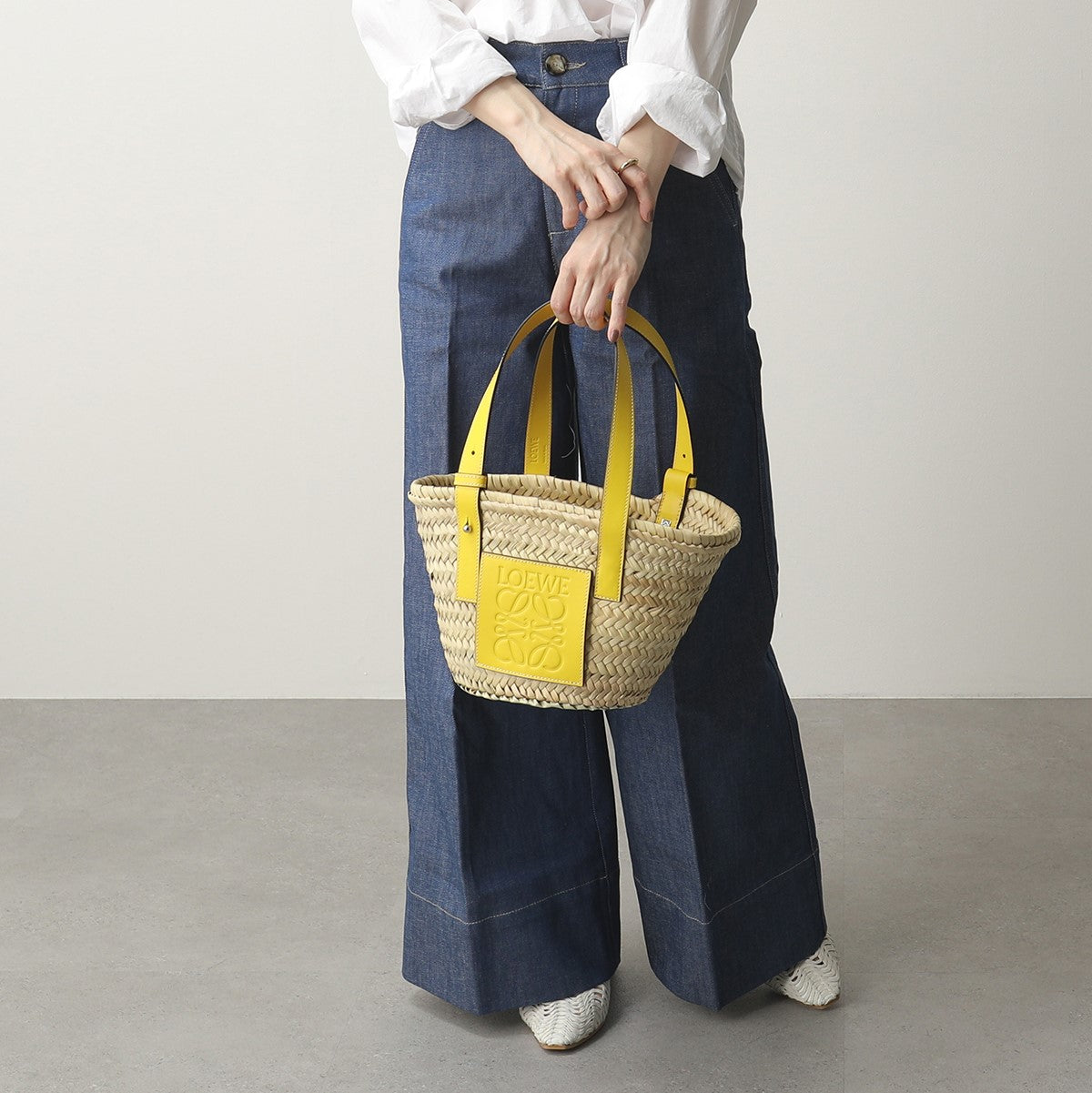 【 年に一度の大感謝SALE】人気・大好評!LOEWE ロエベ 327.02.S93 BASKET SMALL BAG ラフィア×レザー カゴバッグ かご バスケット トート 鞄 8100/YELLOW/TAN/ WHITE レディース