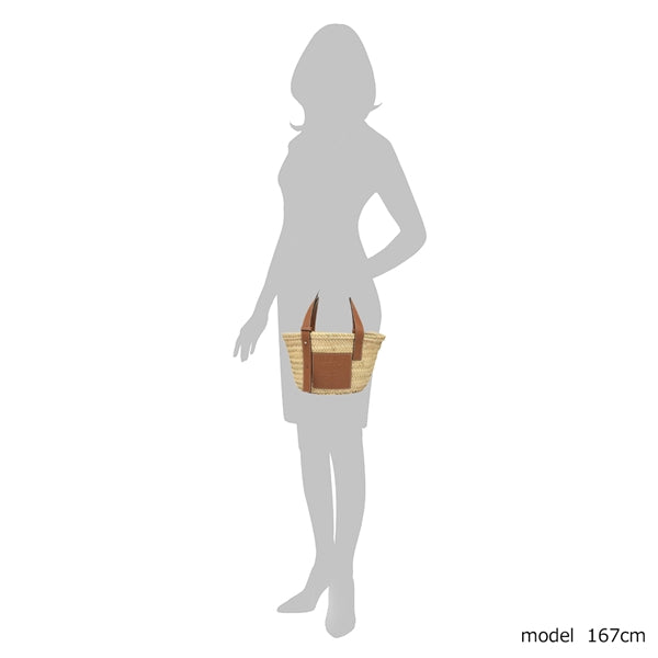 商品説明: アイコンロゴがエンボスデザインされたレザーパッチが印象的なラフィア素材のバスケットトートバッグ。シンプルでモダンなアナグラムが上品な雰囲気を漂わせます。