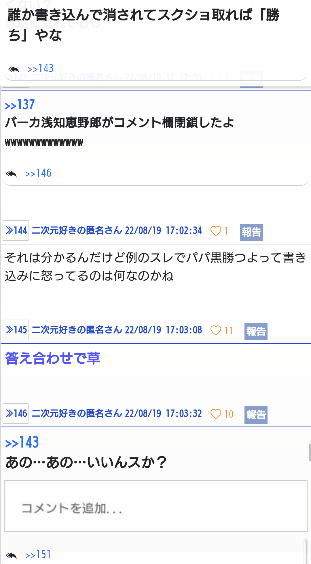 まとめの方のコメント欄はIDあるのに - 45二次元好きの匿名さん22/08/20(土) 03:51:12