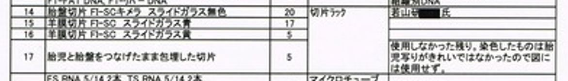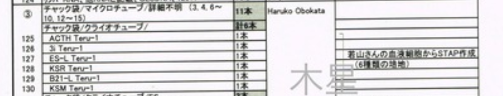 事実は後の解析でもAcr-CAGのヘテロマウスです。ヘテロで正しい。まして、その後実験はヘテロ認識のまま続けられているんです。この後胎盤の光る話になってくる。この胎盤の光るマウスは切片が残されていて丹羽さんも確認しているのですが、丹羽さんが確認したのはFI-SCの胎盤のグラススライドではないか。これは若山さんから渡されたCTSの2Nキメラ胎盤の切片に小保方さんが理研に採用されて後にFI-SCと笹井さんによって命名された後にラベル記載したものでリストに存在している。