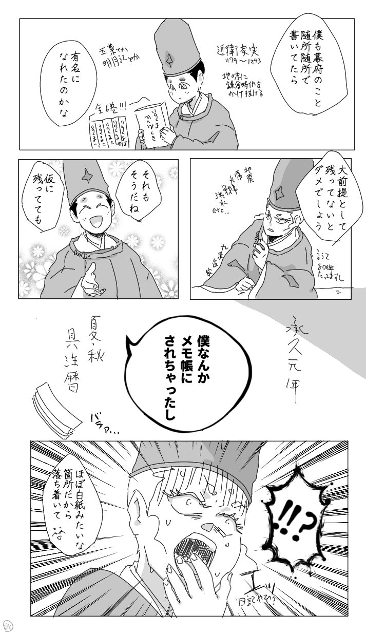 身近で教えてくれるハズの父はもうおらんし、摂関の仕草は家司じゃ細かいところ分んないよなとか、兼実はいるけど兼実だし(笑)とか色んな事が組み合わさって無能と判断が下されてしまったこと