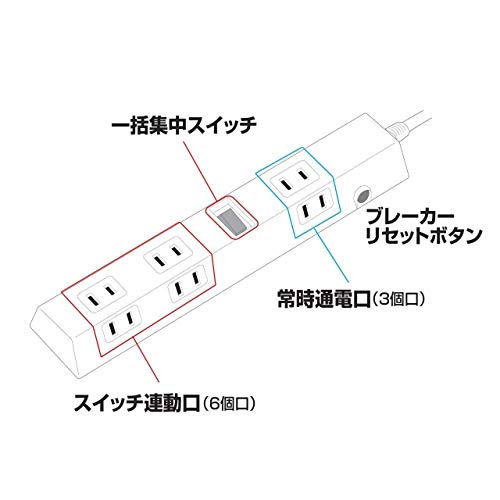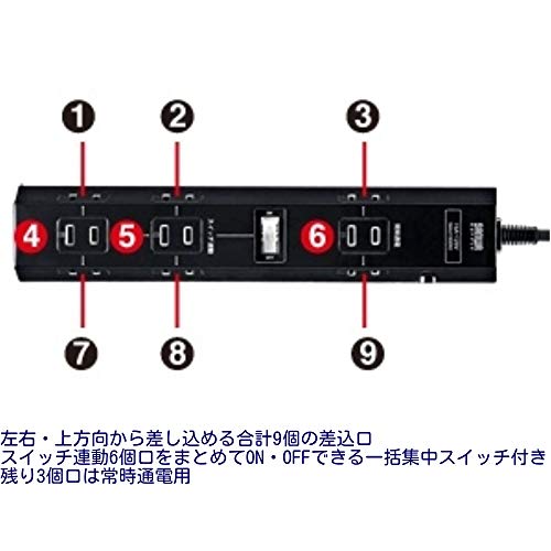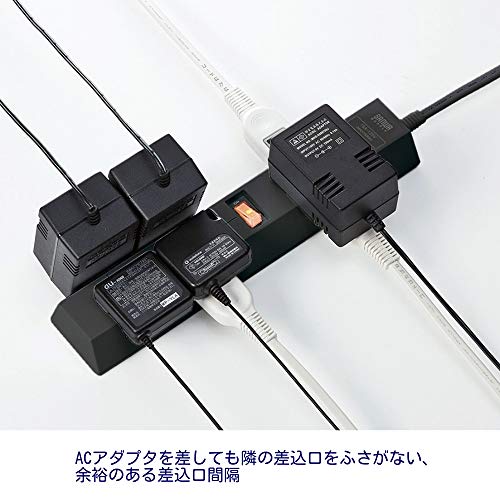 おすすめの電源タップはズバリこれ。9口もある上、差込口の方向が3方向に分かれており、比較的大きなアダプタであってもお互い干渉することがありませんのでオススメです。