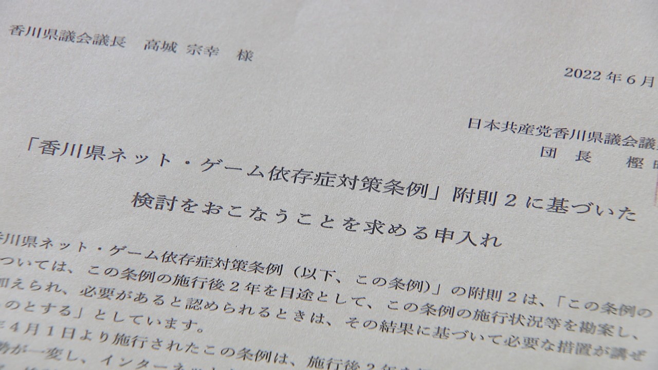 施行から2年が経った香川県のネット・ゲーム依存症対策条例の「見直しの検討」は行われるのか。29日の県議会の委員会で質疑が行われました。