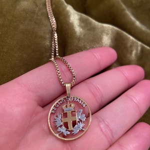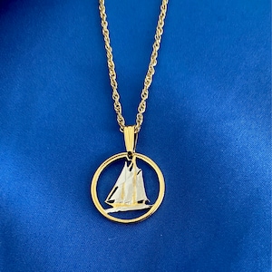 This Japanese 100 Yen was minted from 1967 - 1988, The coin features Three Cherry Blossoms. It has been our most popular Japanese coin to date and still is. Nice size for anyone but seems most popular to Woman. After cutting it is plated in 14 Karat Gold and Rhodium. It comes with a 14 Karat Gold Rope chain.