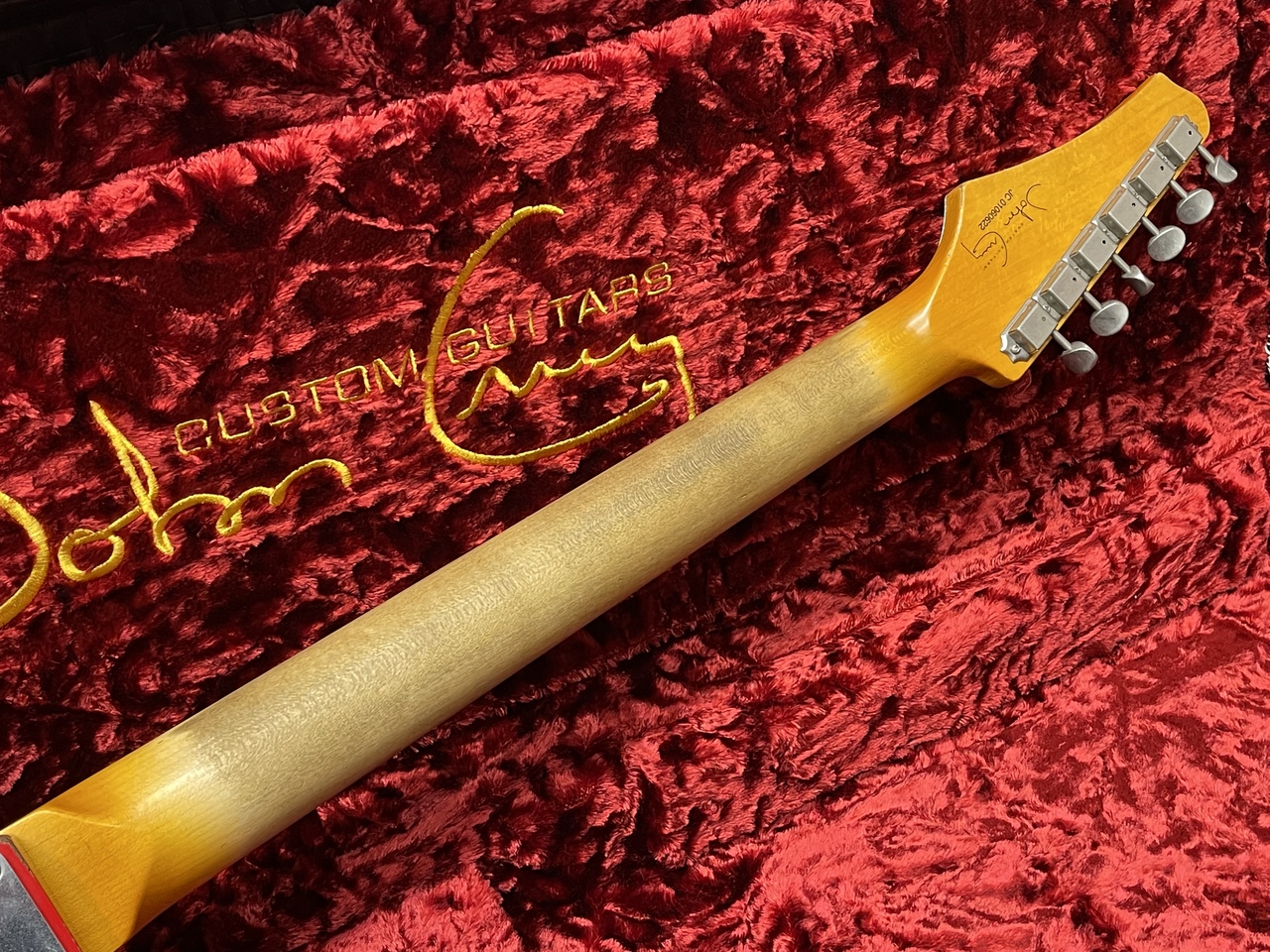 Fender時代から少しだけ重めの木材を好んだJohn Cruzですが、この個体もその例に違わず、3.7kgちょっとの重量となります。