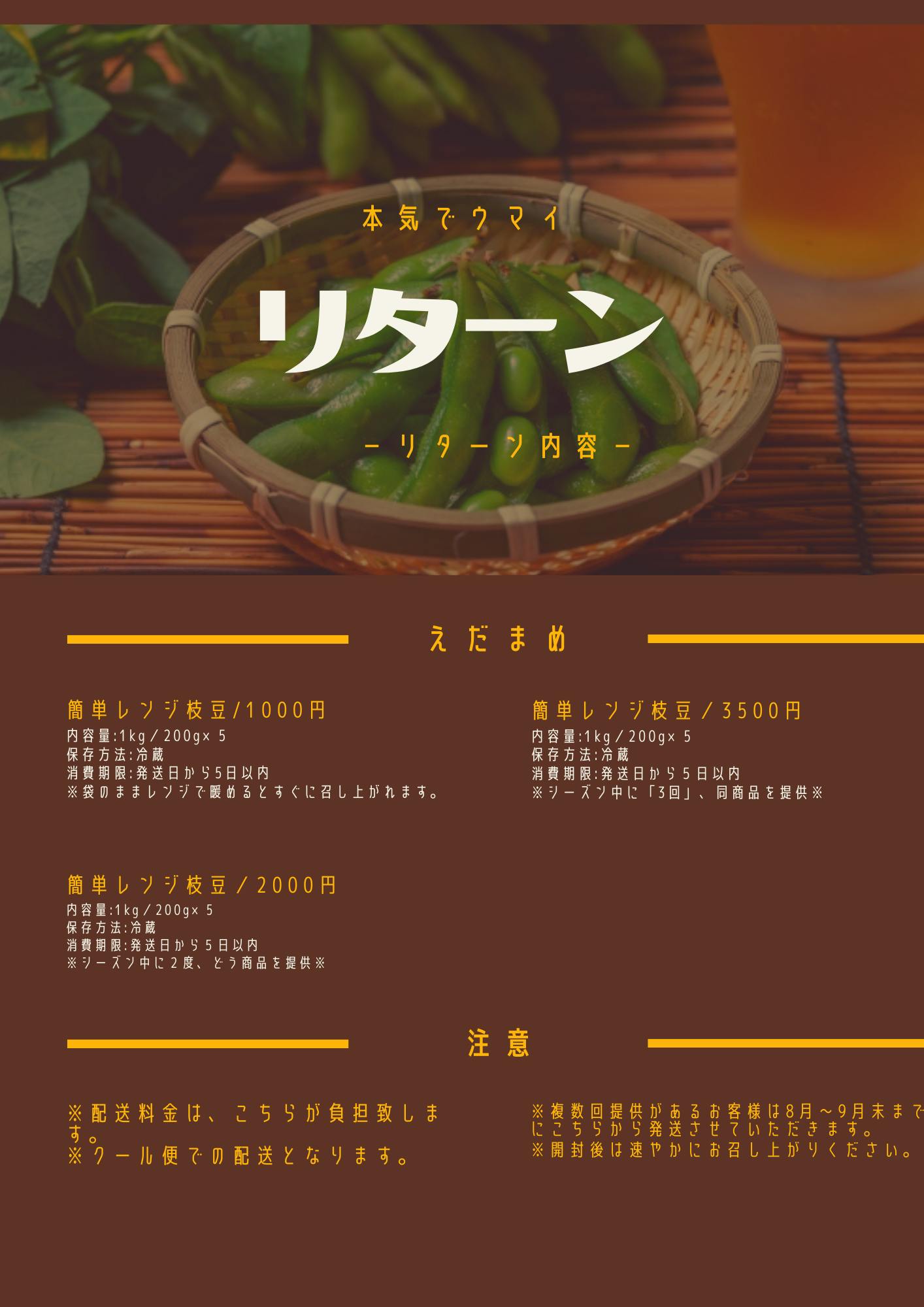 ご支援頂いた皆様にも、安心で、新鮮な枝豆を食べて頂いたい、そのために、全力でお届けしますので、ご協力お願い致します。
