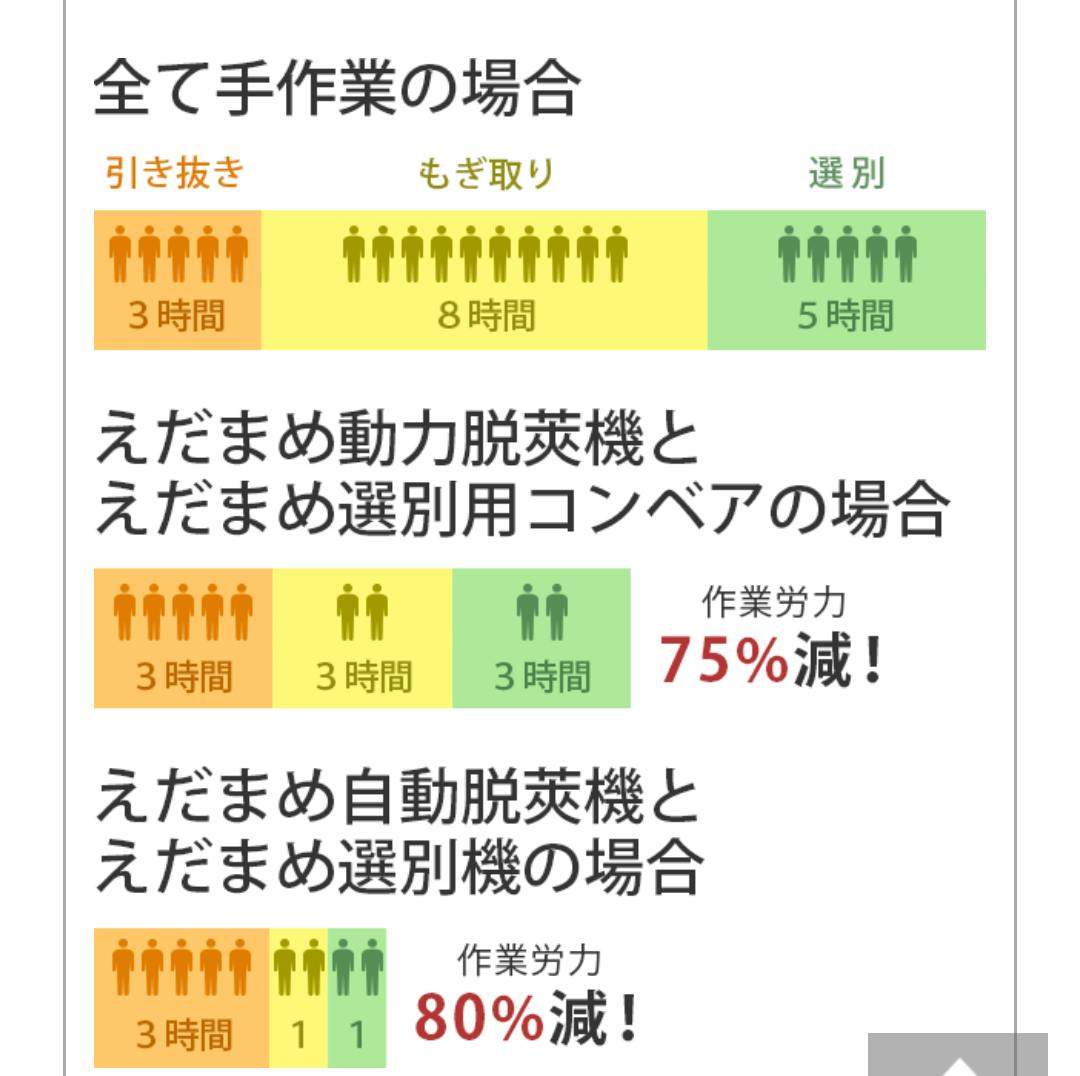 収穫してからすぐに、本物の鮮度の枝豆をお届けするために、効率よく出荷までの作業を終わらせる為に機械を導入。