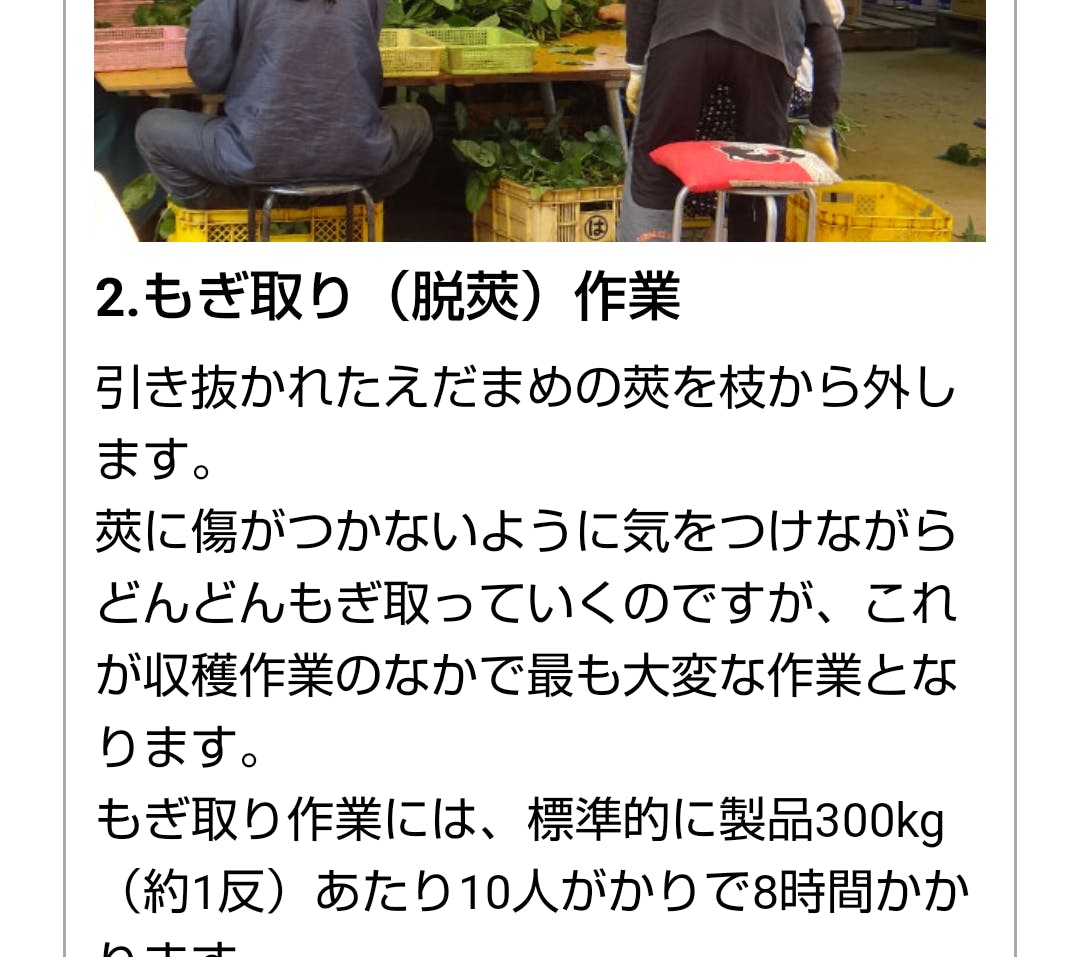 ・一人作業には、限界があり、出荷までの時間を削減して、鮮度の高いものを生産し、みなさんに味わって頂きたい。