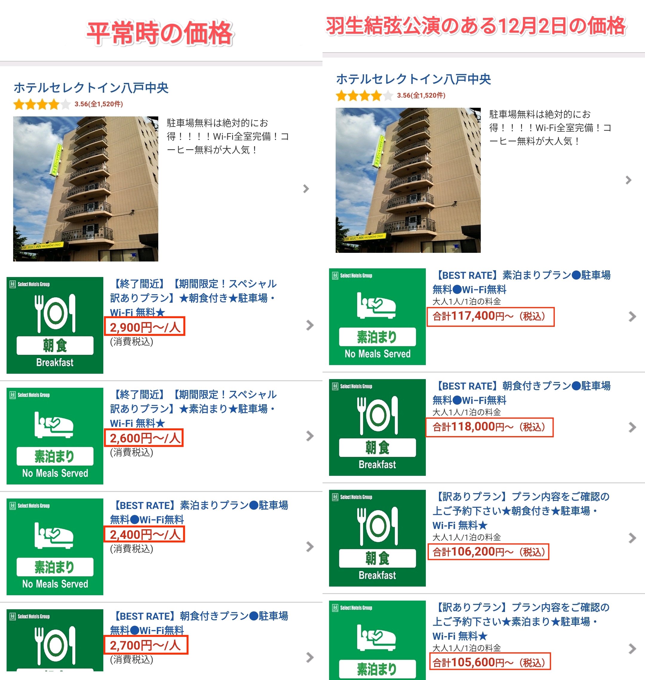 気になるのは他のホテルの値段設定だな
