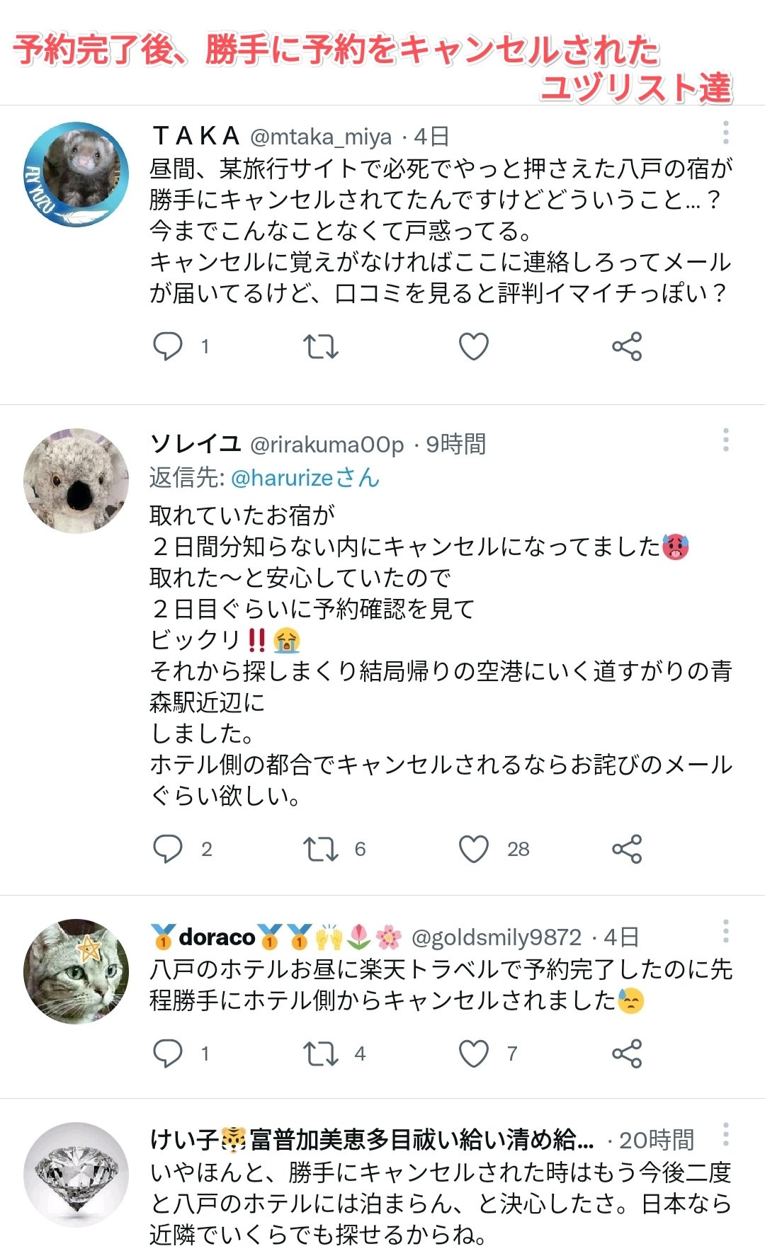 例えばこの場合は被害被ってるのは客と旅行サイトなので旅行サイトからクレームいれてもらうとか