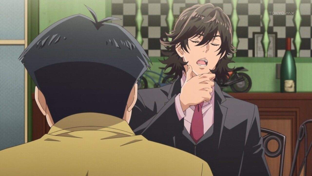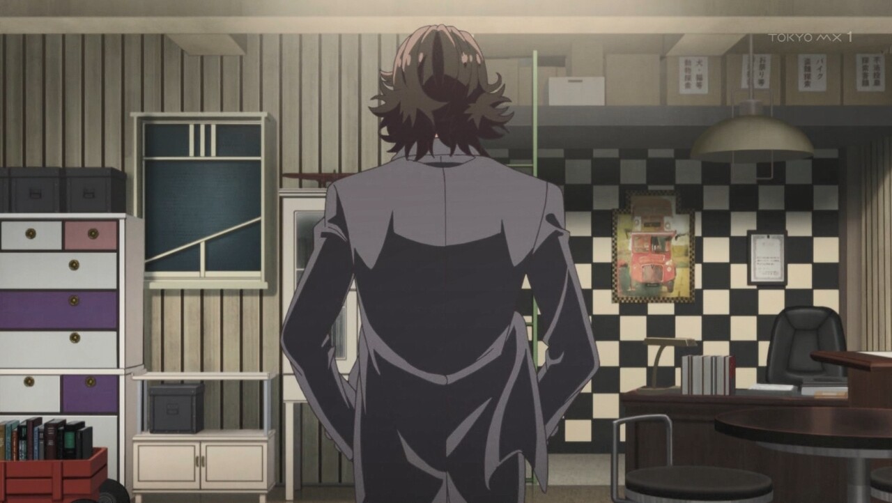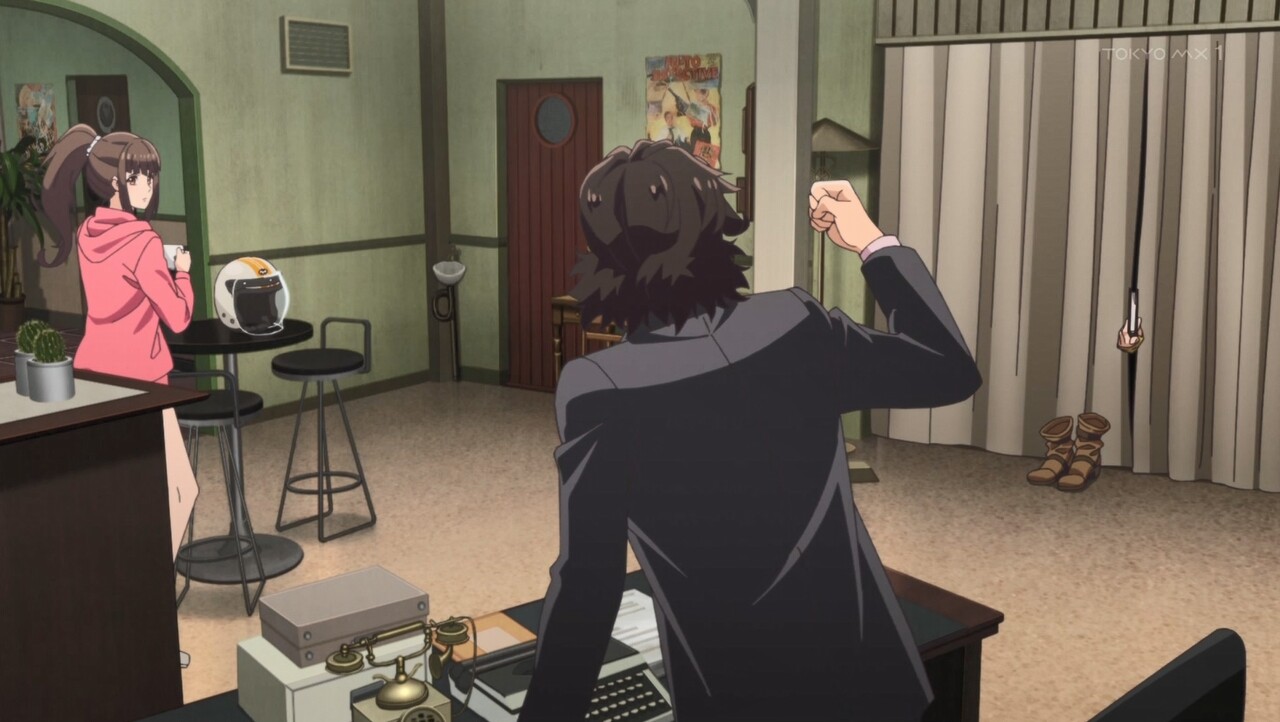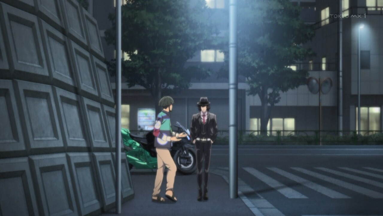 『依頼人が来る?こんな夜中にか?OK。すっ飛んで戻るぜ。はぁ…しっかし相変わらず小うるせぇな我が所長さんは。結婚してもちーっとも丸くならねぇ』