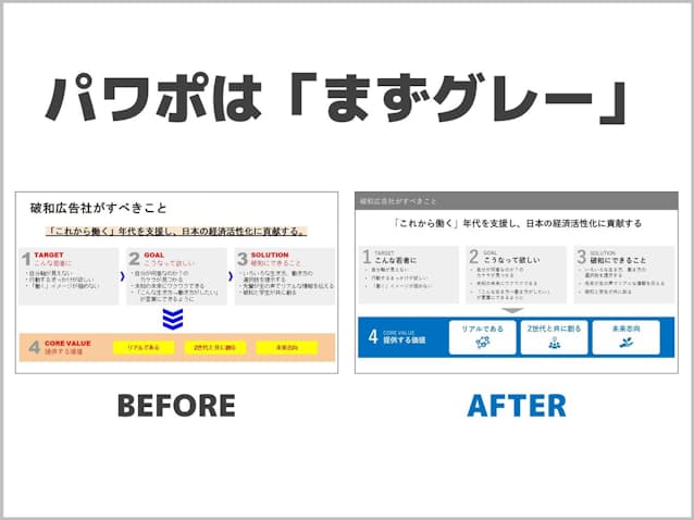 今市くんが連れてきた、破和広告社の天咲さん。きょうは2枚目のスライドを見ていきます。